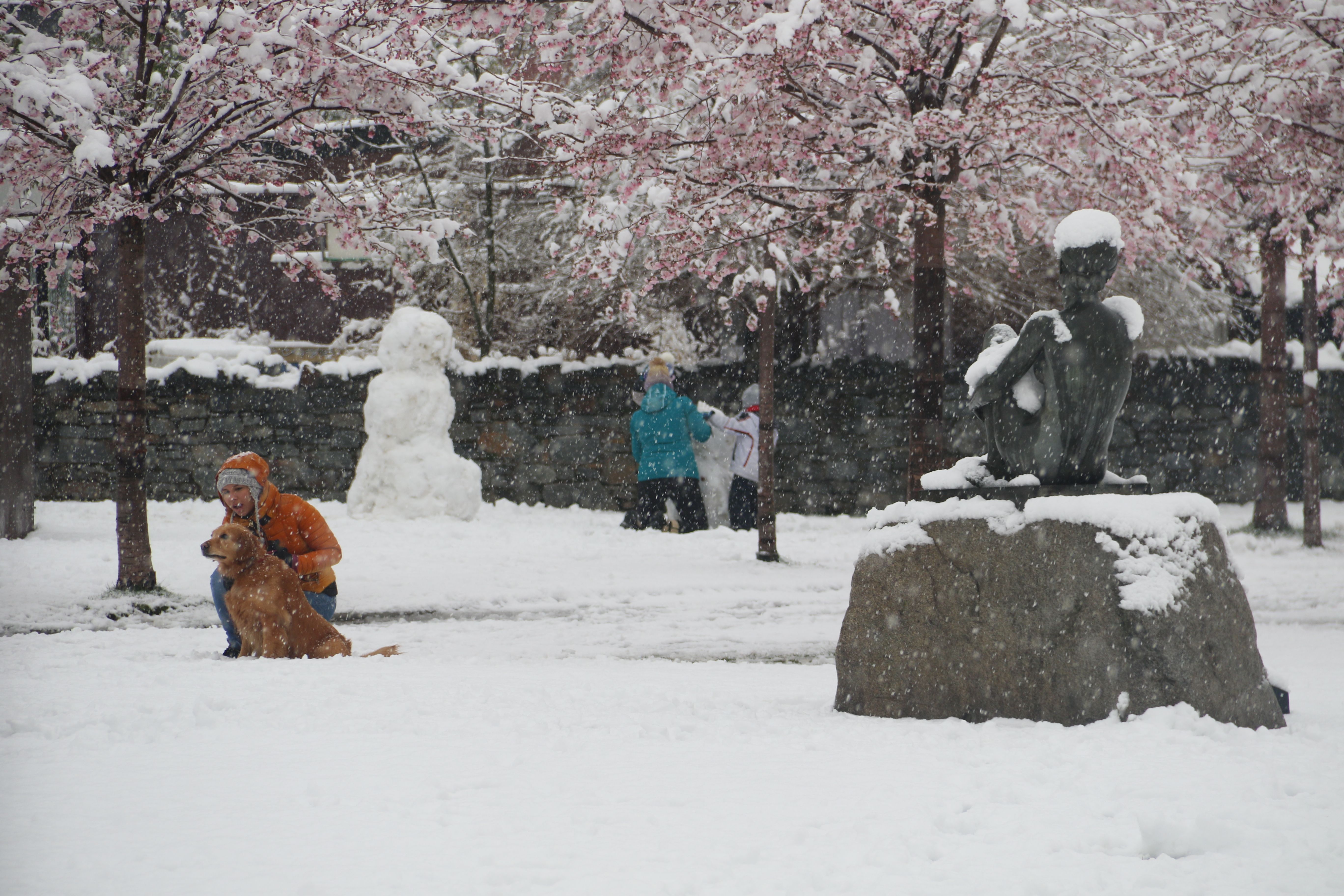 Fent un ninot de neu al costat de l'Oficina de Turisme.