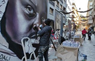 Haver pogut comprovar com del blanc, neutre, llis, dels plafons acabats d’estrenar es passa a rostres amb tots els detalls. Com els grafiters -Nauni69, Nexgraff, Dridali, Nesui, Badicoloreando, Rudiart, Hide2 i Konestilo- perfilen amb esprai, amb ruixades de pintura, cada arruga, cada plegament de la dermis, és tot un encant. Almenys, més d’un i de dos veïns han fet el badoc. I uns quants visitants també s’han parat per comprovar com pugen i baixen els artistes de les escales.