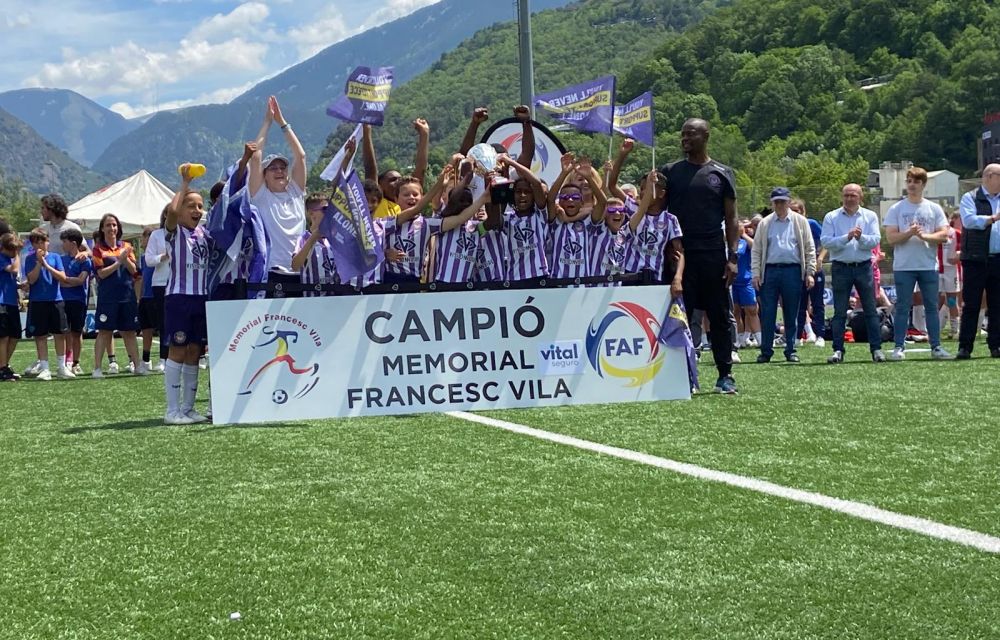 La selecció d’Andorra també ha estat present en les tres categories, tot i que durant la jornada del dissabte ja va quedar eliminada de les finals. Un cop s’han disputat tots els partits, una comitiva encapçalada pel president de la FAF, Félix Álvarez, juntament amb la família de Francesc Vila, han estat els encarregats de repartir els premis. “Estem molt agraïts a la federació que organitza això cada any. És un gust venir a veure que bé s’ho passen els nanos i ens agrada que vingui gent de fora. Ens emplena d’orgull. Fa més de vint anys que s’organitza aquest torneig i cada cop venen equips més potents, de tot arreu. Aquest any ha vingut el Toulouse, l’any passat va venir el Madrid, Slàvia de Praga... Ens enorgulleix que sigui un torneig ja consolidat”, reflexionen el Sergi i l’Eduard, fills del que fou el primer president de la federació.