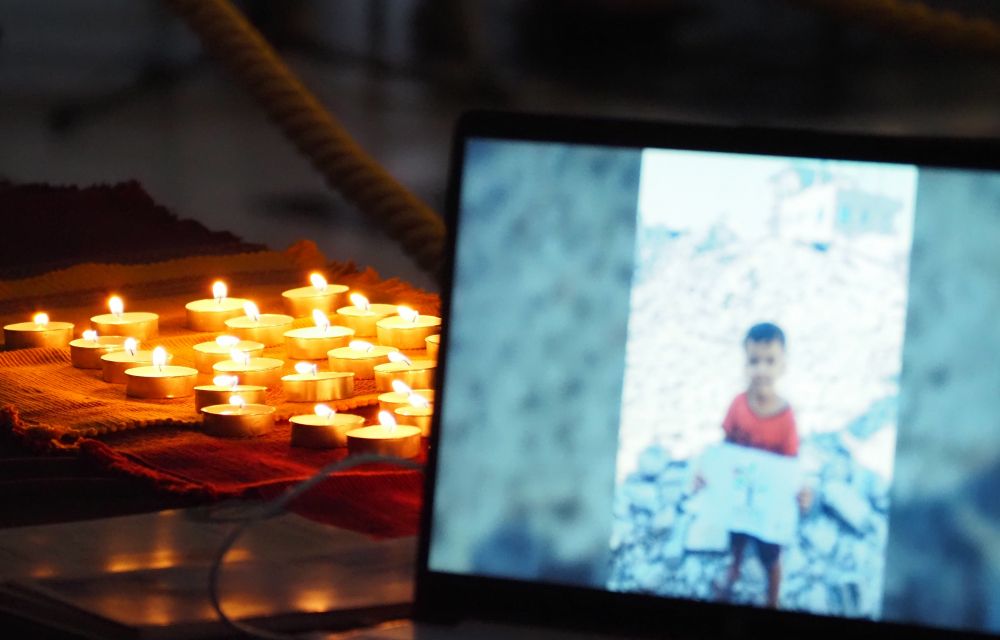 Encesa d'espelmes a l'acte de Hope Palestina.