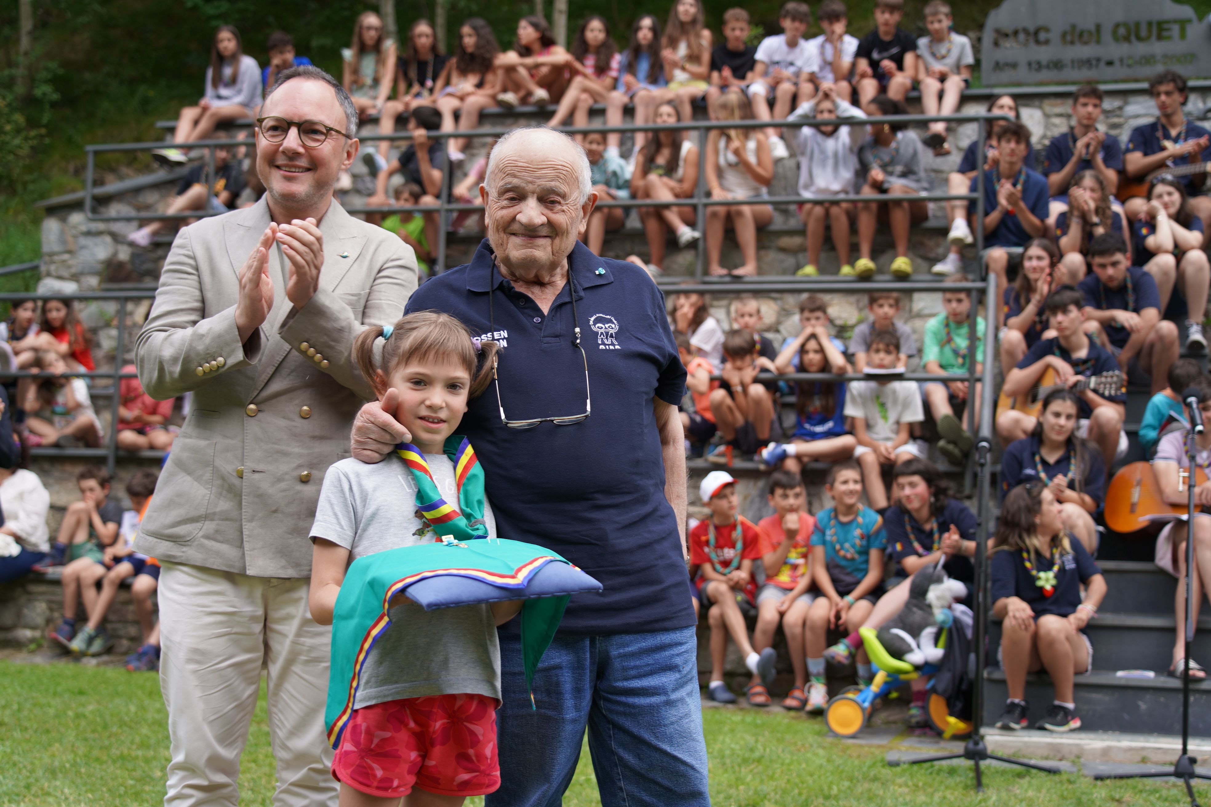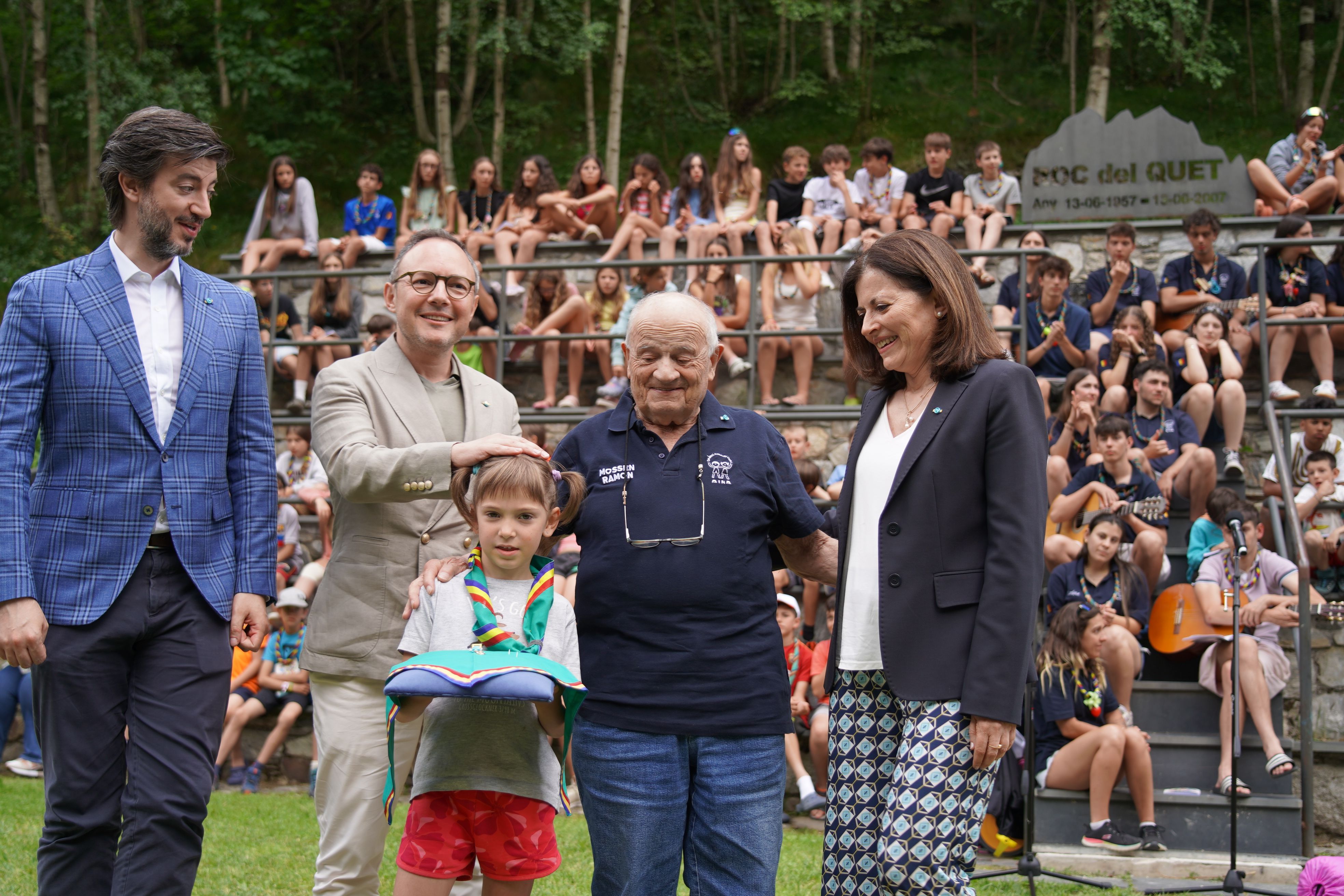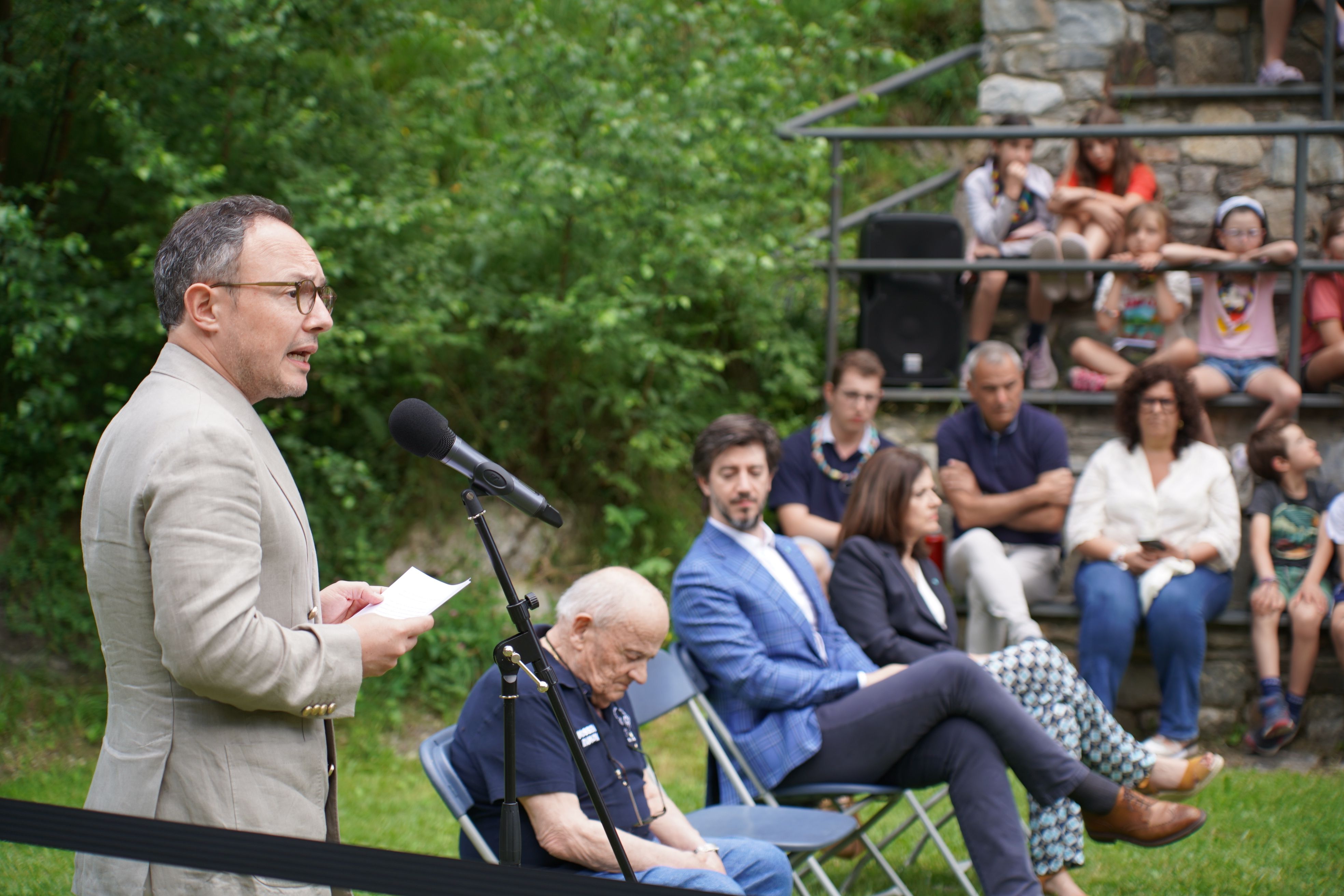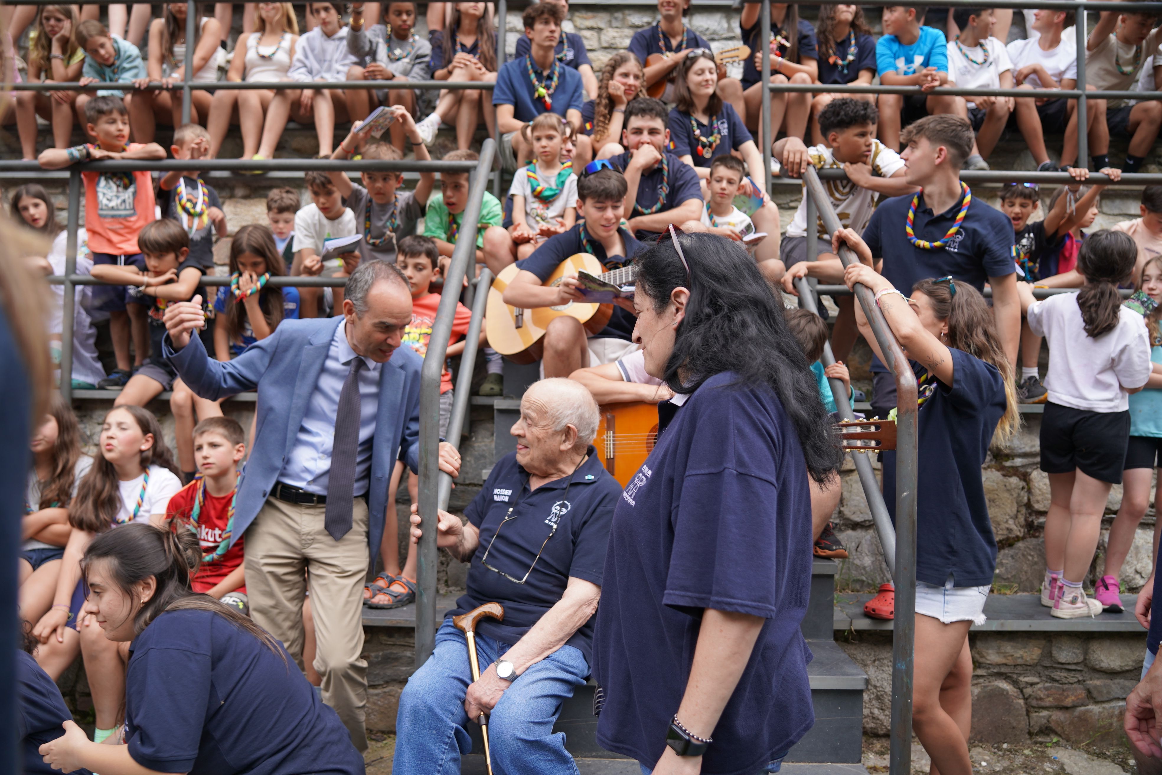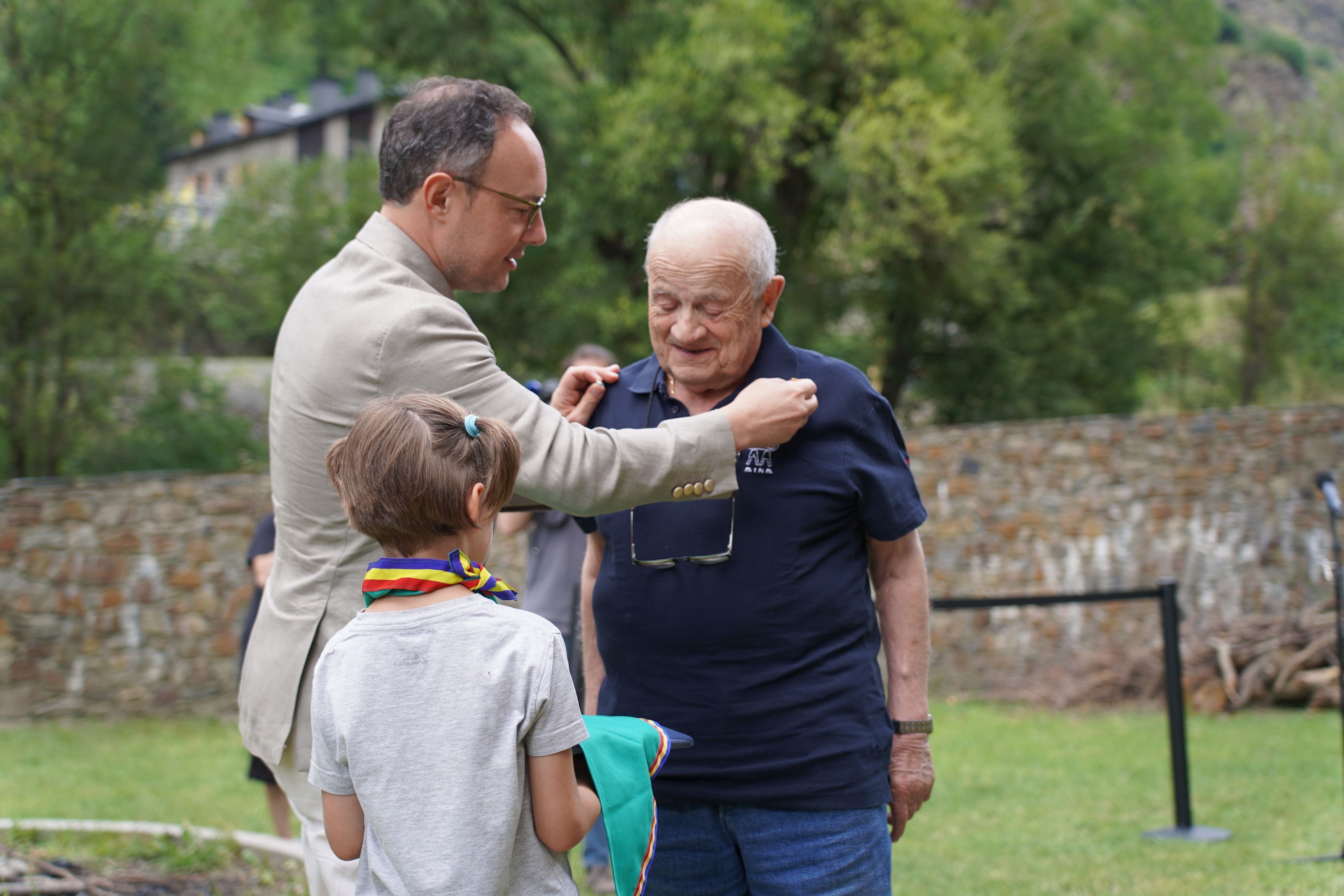 David Palmitjavila ha parlat en nom de molts monitors. I Xavier Espot ha posat damunt el terreny de joc d’AINA des de Pep Visa a la Margarida, la filla de la Ramona. Que si l’Esther Planes, la Maite Casals, la Meritxell Palmitjavila o la Maria Àngels Bardina. El cap de Govern, en el seu parlament previ a entronitzar Ramon Rossell en l’Olimp de Carlemany ha parlat a través de l’experiència de molts ‘ainistes’. “Mossèn Ramon és AINA. I no AINA com una representació dels edificis o d’unes colònies d’estiu, sinó AINA com tota la gent que s’estima Andorra, que s’estima la muntanya, que els agrada la convivència, tots els amics que fas, tots els valors que t’inculquen.” Els representants dels actuals monitors també l’han elogiat.