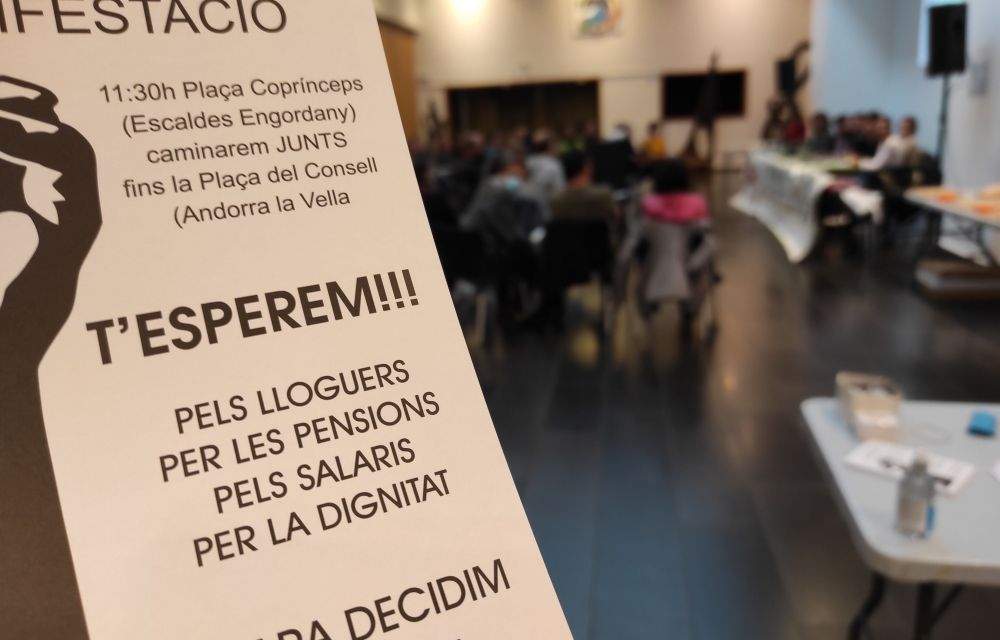 L’assemblea ha servit per aprovar els comptes del sindicat o per donar compte, que és diferent, als diversos contactes realitzats en el marc de les modificacions legislatives. I per a Guinot és important el fet que s’ha arrencat el suport de l’afiliat a la manifestació de diumenge, que entre altres, el SEP és un dels sindicats que impulsa la concentració. “Pels lloguers, per les pensions, pels salaris, per la dignitat. #Ara decidim #Ara sí toca”, resen les octavetes que s’han repartit a l’assemblea.