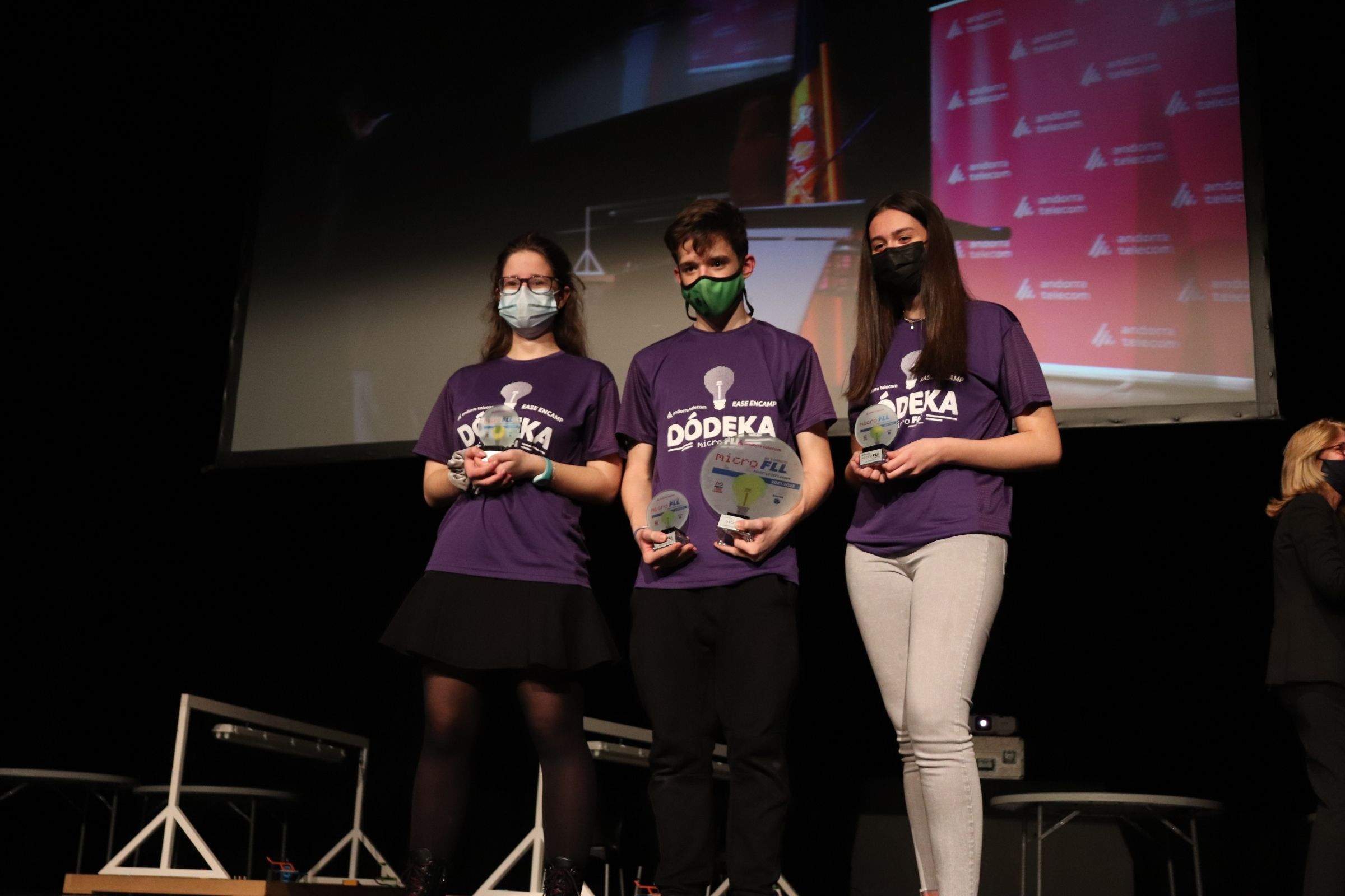Aquest grup, però, no ha estat l’únic en rebre reconeixement. Com bé ha explicat Nadal, són diversos els valors que es busquen potenciar en aquesta competició, més enllà de tenir una proposta tecnològica innovadora. D’aquesta manera, el grup ‘Dodeka’, de l’escola andorrana d’Encamp, han rebut el premi al projecte valors, que destaca la bona sintonia entre els companys. En aquest sentit, Nadal ha volgut destacar que “la comunicació dintre de tots els grups ha estat extraordinària”. D’altra banda, l’equip ’29 Doraemons’ ha rebut el guardó al projecte científic, que ha destacat la seva presentació i la qualitat del projecte.