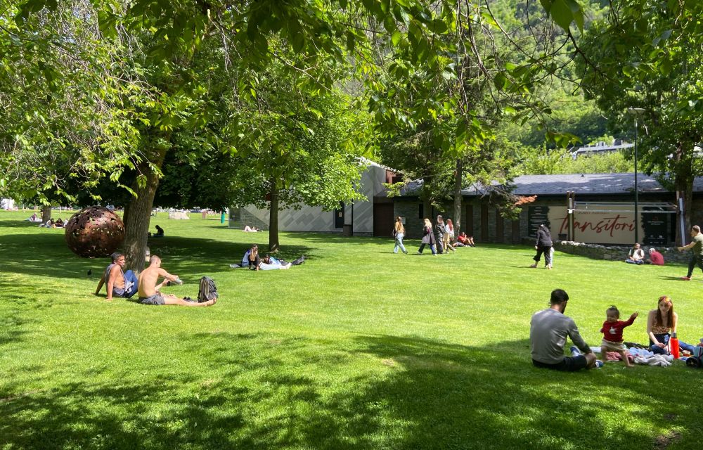 Amb els primers caps de setmana de calor, el Parc Central esdevé un punt de trobada per a residents i visitants. L’espai, situat al cor de la capital i a tocar del riu Valira, ofereix un ‘microclima’ més fresc i agradable que convida a estirar-se sobre el verd, llegir, prendre el sol o, simplement, deixar passar les hores. Entre l’olor de gespa fresca i l’aire que corre des del riu, es veuen parelles estirant tovalloles, famílies fent pícnic, lectors absorts -sigui amb llibres o tauletes electròniques- o infants corrent pel parc infantil.