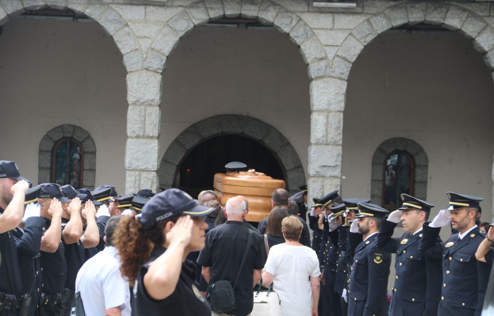 En formació i degudament uniformats, amb el director, Bruno Lasne, al capdavant però també saludant com el qui més, s’ha rebut el fèretre amb les despulles de l’agent major que prestava servei els darrers temps al servei local d’Andorra la Vella i que feia molts serveis directament vinculats a la Seu de la Justícia. D’aquí que hi hagi hagut una nombrosa representació d’aquest col·lectiu en el funeral. De fet, Pozo era un home molt estimat. I molt conegut. Tots els cossos i departaments de l’administració, d’una manera o altra, han estat representats a la missa funeral.
