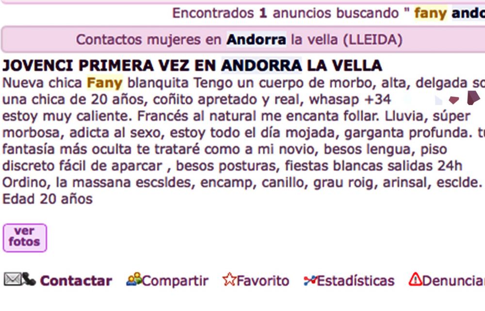 Perquè aquesta és un element força constant: les dones que solen exercir la prostitució a Andorra són importades. Però no només. També hi ha, discretament, dissimuladament, prostitució domèstica. Dones que puntualment presten els seus serveis. En aquest sentit, i sense poder-ho afirmar amb rotunditat, hi ha un cas obert per una agressió molt violenta a una dona a Santa Coloma que podria tenir a veure amb aquesta activitat. És una de les línies de la investigació que se segueix des de la policia per ordre judicial.