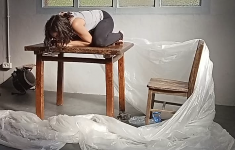 L’any passat, Regada va tenir l’oportunitat de fer una residència artística a Irlanda. “La natura que tenen allà em va captivar moltíssim”, explica. “Vaig començar a treballar amb el cos, la natura, i vaig sentir la necessitat d’afegir el plàstic”. Aquesta fusió d’elements va sorgir d’una reflexió sobre com “vivim aïllats en un món de bombolles de plàstic creades per les nostres rutines, el dia a dia, i la pressió social”. Quan va tornar cap al Principat, va començar a treballar aquest tema i va decidir crear ‘Plasticida’, una ‘performance’ que ha vist la llum gràcies a l’Andorra Crea.