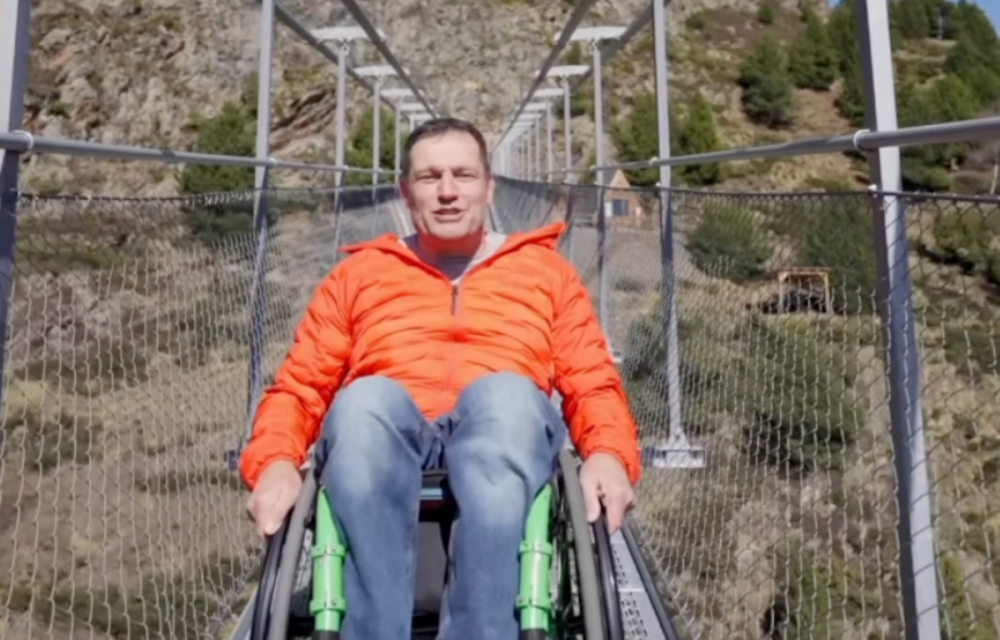 En el vídeo, Llovera s’encarrega d’anunciar que el pont ja torna a estar obert. Se’l veu recorrent la passarel·la amb la cadira de rodes. I ho fa arribant fins al centre de l’atracció, tot anunciant que “avui creuem més de 600 metres” i avançant que “a la pròxima, potser anem més enllà”.