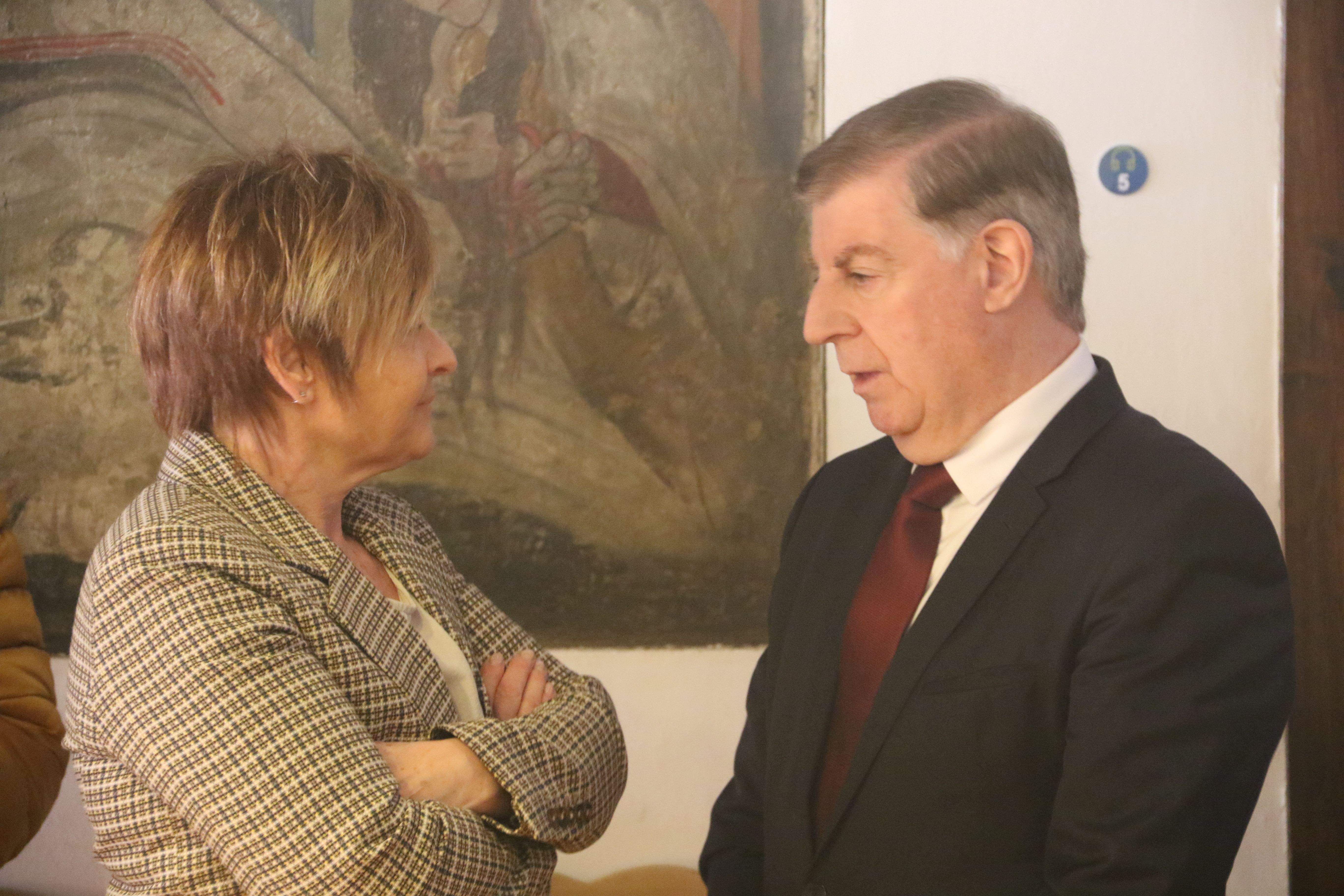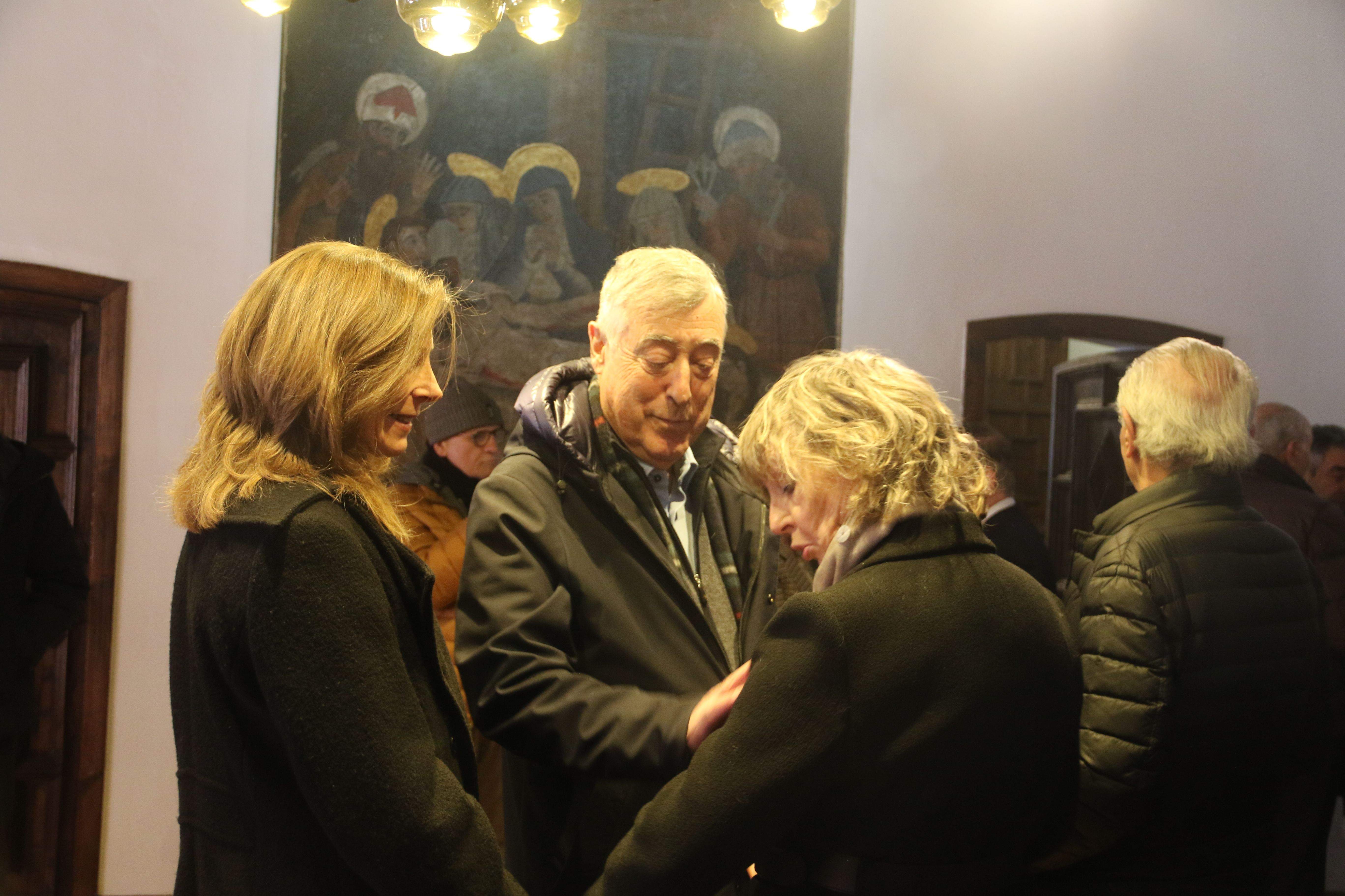 Ladis Baró saluda Bibiana Rossa en presència d'Enric Casadevall.