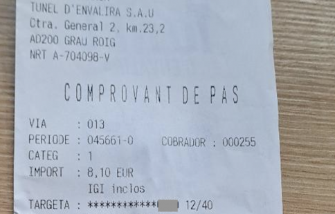Els darrers quatre dígits -l’únic identificador visible- no coincideixen. I això, segons explica, no és un cas puntual: “Ha passat diverses vegades”. El conductor insisteix que els imports són correctes. Ho sap perquè ho controla tots els tiquets i registra la despesa en un full de càlcul, però, tot i això, la situació, si més no, el fa reflexionar sobre la imatge que està donant el Principat. A més, es qüestiona fins a quin punt es poden compartir dades, encara que siguin parcials, d’una altra targeta, i sobretot per què un usuari ha de rebre un comprovant que no és el seu. El testimoni, que guarda tots els tiquets per tenir un control i passar-los a l’empresa, també ressalta el problema que podria suposar a l’hora de fer aquest tràmit, si veuen que no coincideixen.
