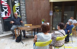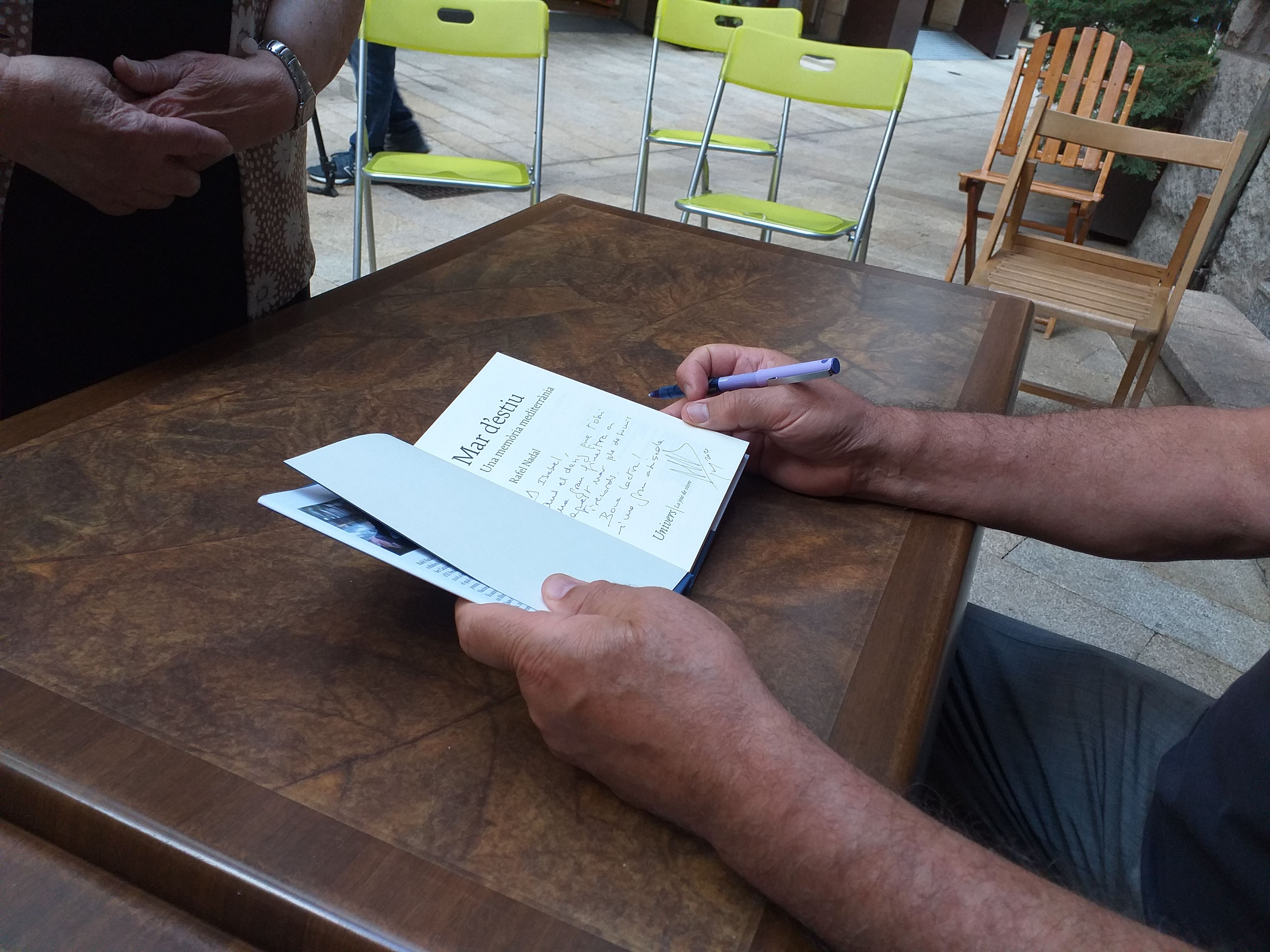 “Jo el conec des que el veia amb el Cuní”, li ha dit una de les assistents, que ha estat de les primeres a demanar que l’escriptor estampés la seva signatura a un exemplar de ‘Mar d’estiu”. Algú no s’ha estat de recordar que, des de llavors, ha passat temps. Prou perquè la bibliografia de l’autor gironí ja hi hagi vuit llibres.