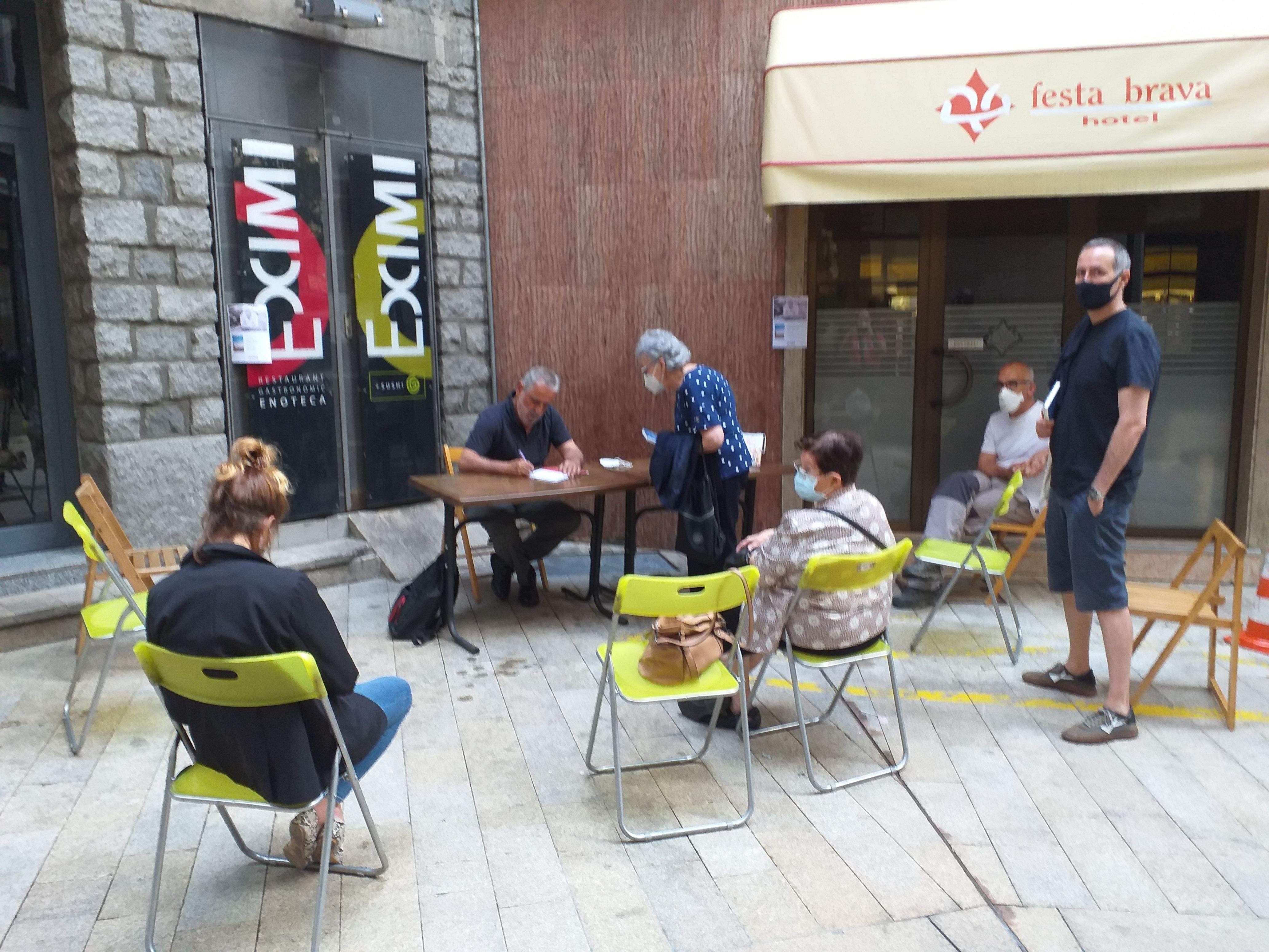 Això sí, amb les precaucions degudes per culpa de la Covid-19. L’acte s’ha fet al carrer -sort que la pluja ha volgut respectar la cita- i amb les degudes distàncies de seguretat. I, lògicament, a l’hora de signar, tocava fer-ho amb mascareta. Res, però, ha impedit a escriptor i lectors poder gaudir d’una estona tant agradable com impensable fa tot just unes setmanes.