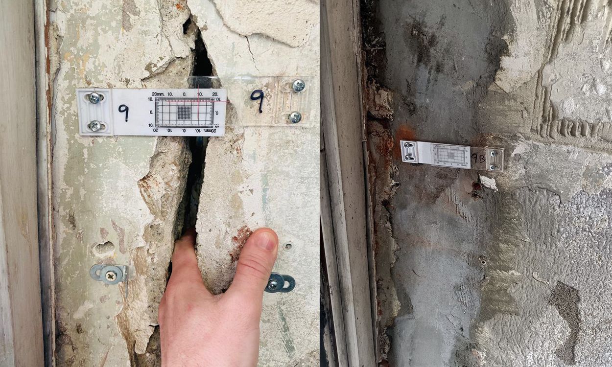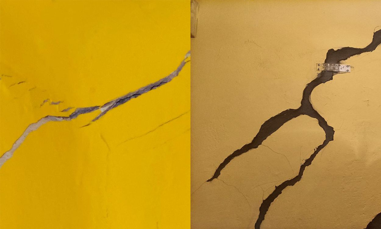 Les esquerdes del rebedor el dia del desallotjament i l'estat actual