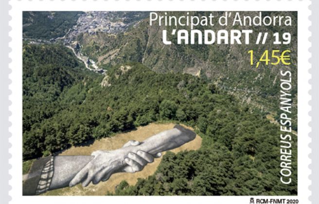 I la filatèlica, impressionada per les mans de Saype, se centra, per homenatjar el certamen Biennal Internacional Andorra Land Art se centra en la tercera edició, la del 2019, centrada en la tècnica de l’’Shinrin-yoku', que es podria equiparar a banys de bosc. Tot remarcant el majestuós patrimoni natural de què disposa el Principat, es recorda que en aquella edició va tenir com a marc incomparable tot el voltant del llac d’Engolasters. I que una quarantena d’artistes de diferents nivells, tècniques i interessos hi van deixar la seva empremta. Una empremta, però, que va quedar eclipsada per les mans que esdevenen, ara més que mai, un segell de ‘land art’.