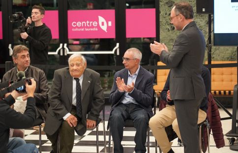 Envoltat de peces de la imatgeria laurediana que ell mateix ha creat, Sergi Mas seia acompanyat dels seus fills. Entorn seu s’arremolinaven un bon grapat d’assistents a l’acte d’entrega de l’Orde de Carlemany que no volien perdre ocasió de saludar-lo i intercanviar-hi unes paraules. Amb 95 anys complerts el passat 30 d’octubre, el seu cap carbura a la perfecció, si bé les cames no l’aguanten tant com segurament voldria. L’acte ha començat amb música del Duet Daura, la dansa dels gegantons de Sant Julià, acompanyada d’imatges de l’obra de Mas. Un format que s’ha repetit al final amb la dansa dels gegants i un muntatge audiovisual creat pel net del protagonista, Hèctor Mas, mostrant una vessant molt més personal de l’homenatjat.