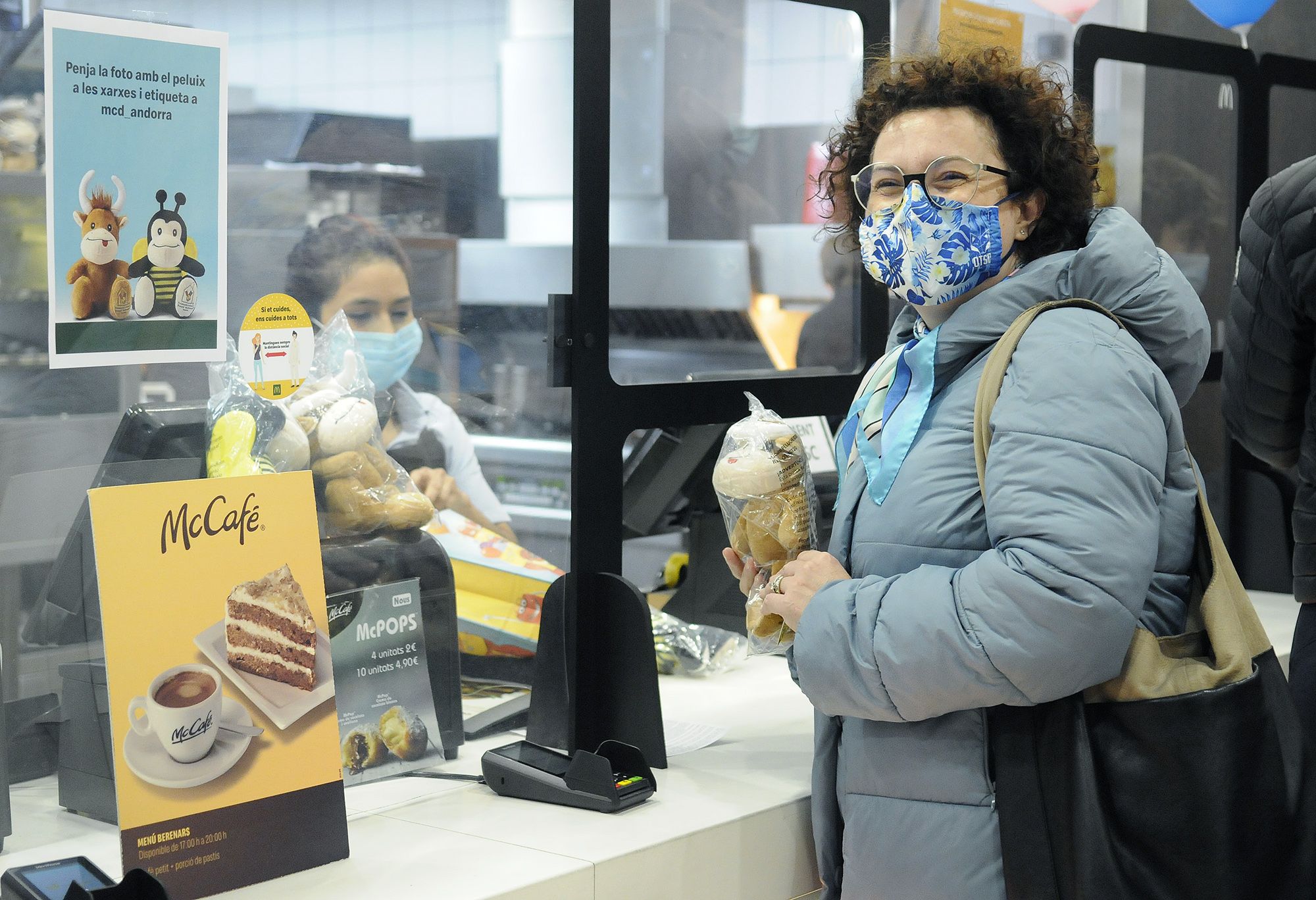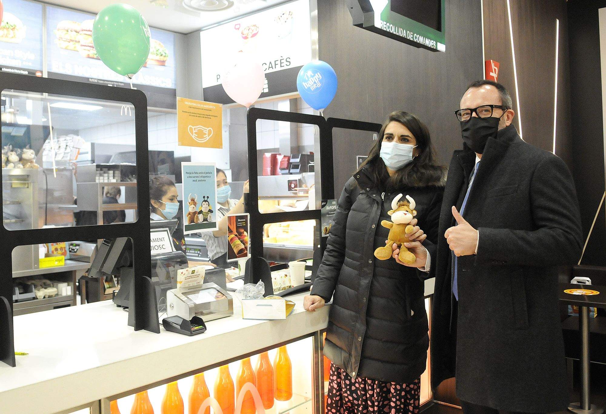 Els cònsols d'Andorra la Vella, David Astrié i Conxita Marsol, al McDonald's