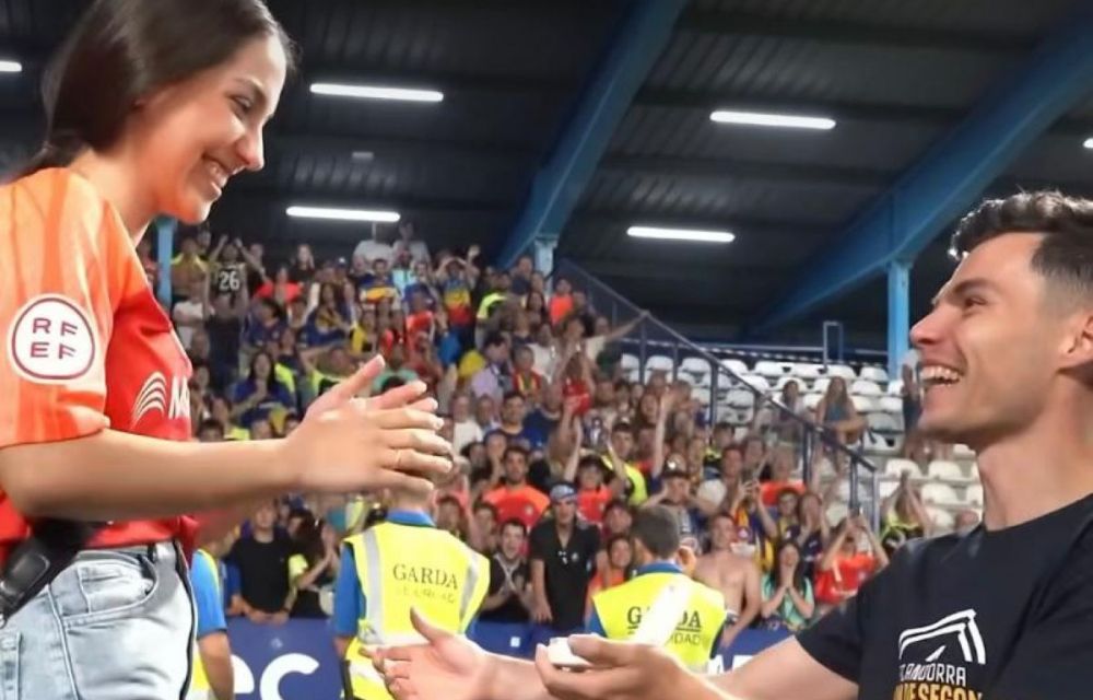 “Jo ho tenia pensat per la setmana següent, però quan vaig saber que venia al partit, em vaig posar l’anell a la motxilla i vaig dir: ‘si surt allà, doncs perfecte’”, explica l’atacant de Plasencia, ara ja de vacances a Córdoba, la ciutat natal de la seva promesa. Amb l’estadi de la Ponferradina encara ple d’adrenalina, i els jugadors corrents cap al córner visitant per fondre’s amb els fidels seguidors de l’Andorra, Redondo va aprofitar l’eufòria del moment per fer el gran pas que havia previst per a dies més tard.