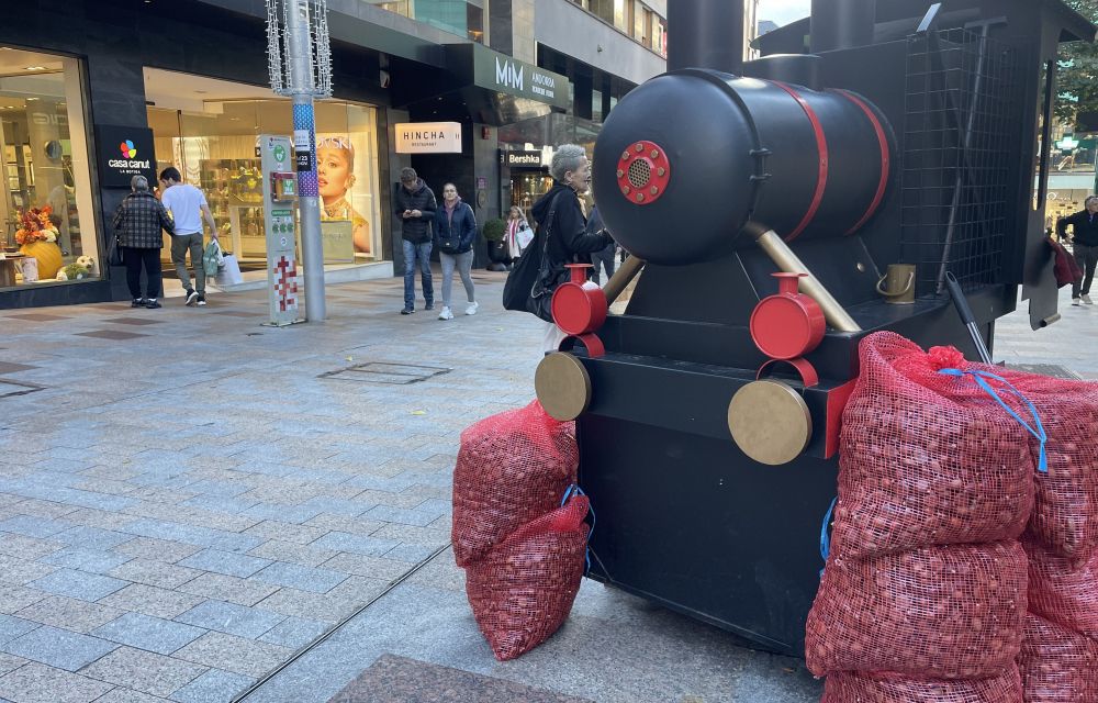 A la cruïlla entre l’avinguda Meritxell i Bonaventura Riberaygua, hi trobem una tradició que passa de generació en generació. La castanyera que hi treballa continua el que van iniciar la seva àvia i el seu pare. Fa 25 anys que ven castanyes i en fa sis que instal·la la parada a Andorra. Explica que “la temporada està anant bastant bé”, tot i que reconeix que la calor pot frenar algunes vendes puntuals. Enguany, afegeix, la disponibilitat del producte també està marcada per factors externs: els incendis a Galícia han reduït la collita i això ha encarit el producte, que compra a Mercabarna “a uns 8 euros el quilo”. Amb tot, assegura que la tradició es manté. Remarca, però, “com que els nens són de vacances, no es viu tant al carrer.” Tot i així, quan arriba el dia, diu que fan “cues i cues”.