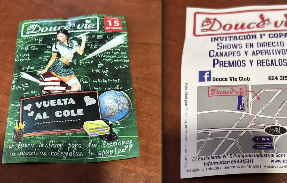 No es tracta de qualssevol local d’oci. I tampoc no és del país. Està situat a Puigcerdà, en un polígon industrial, i hi ha xous, convits de copes, aperitius i qüestions diverses. És una ‘tornada al col·le’ prevista per a divendres i que en segons quins sectors està causant molta indignació. Especialment la frase “es busca professor per donar lliçons a les nostres col·legiales, t’hi apuntes?”