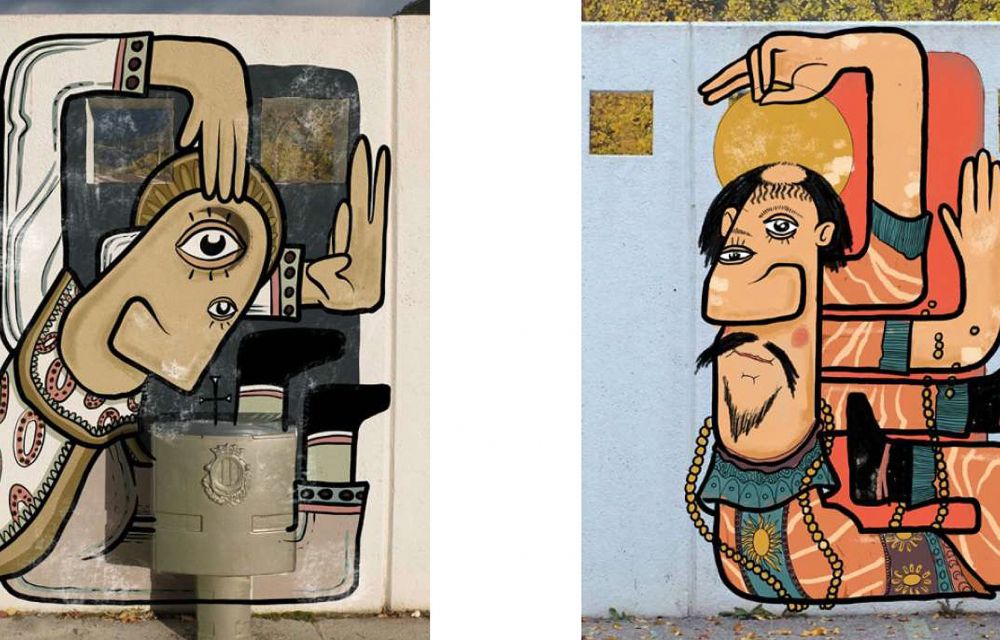 Els tòtems reflectiran una nova mirada sobre els dos sants -Silvestre i Gregori- les pintures dels quals, tot i formar part de les creacions romàniques originals que el mestre de Santa Coloma va pintar en els seus frescos, no es conserven al Principat. Un és als Estats Units. I de l’altre se’n desconeix el parador. Tots plegats passen pel sedàs d’una mirada jove i més o menys atrevida per reinventar-se, reinterpretar-se. I tant en matèria de creació -el que es veu- com quant a la tècnica hi ha una mica de tot.
