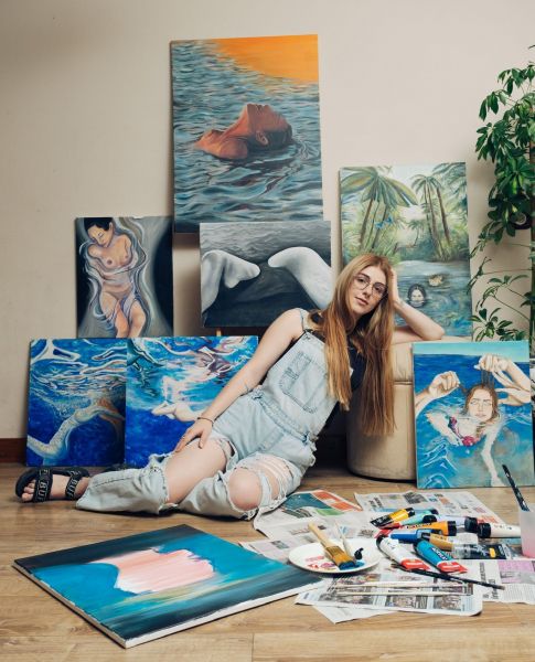El 2019 va ser un any molt complicat on l’artista sentia que “tot m’estava ofegant i no sentia que arribés a res, i sentia que el món se m’estava menjant”. A poc a poc i sense gairebé ni adornar-se va començar a pintar i pintar quadres, i tots ells tenien un fil conductor: l’aigua. “Sempre que anava a nadar o em deia una banyera era el moment de calma i tranquil·litat on estàs sola amb tu mateixa i ningú et veu, pots plorar tranquil·lament”, diu. Aquesta dualitat la va començar a plasmar a les seves pintures, on també va començar a tractar temes com els TCA, l’autoestima i el cos. “Conec a gent que ho han patit, i quan era petita, no ho arribava a entendre el perquè d’aquestes coses, fins que em va tocar tan de prop”.