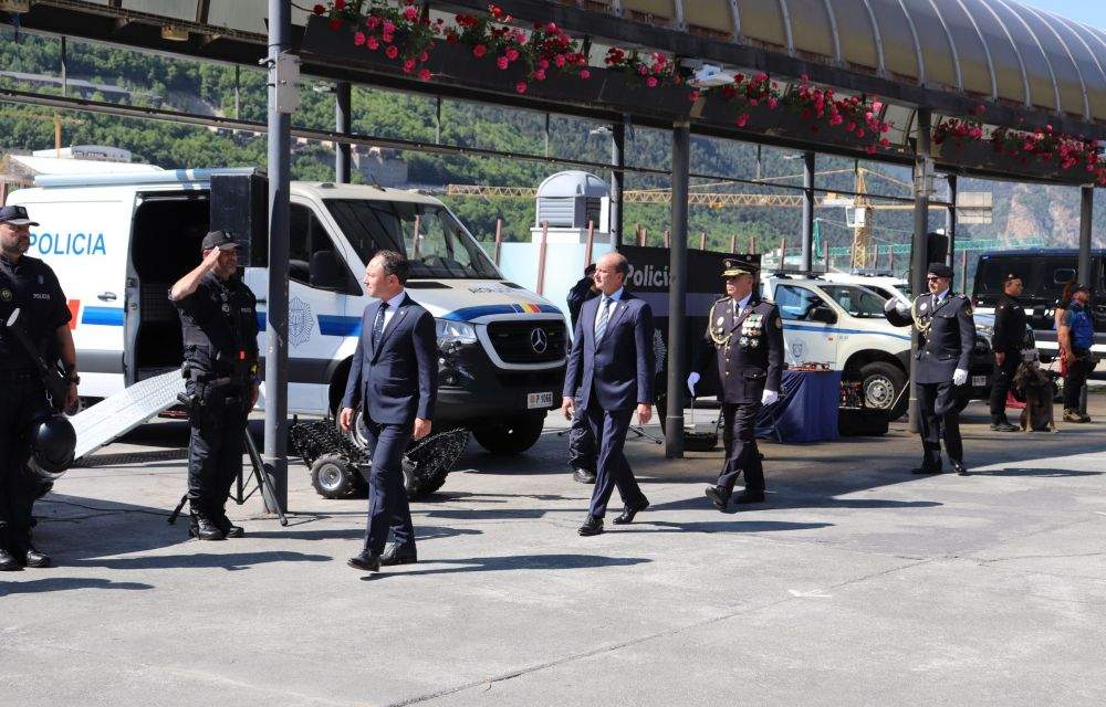 Després de la tradicional missa, s’ha procedit a la també tradicional concentració a la plaça del poble. Els nous agents de policia han fet l’entrada, on els han rebut representants dels cossos especials, autoritats i altres serveis de l’ordre d’altres països. Hissada de bandera, revisió per part del Govern i himne. Tot ha anat com la seda, menys aquest darrer punt. S’ha donat al ‘play’ abans d’hora. S’ha parat. Quan tocava, s’ha engegat de nou, però ja estava començat. S’ha parat. Finalment, s’ha rebobinat i s’ha pogut escoltar amb normalitat. Després de tres intents.