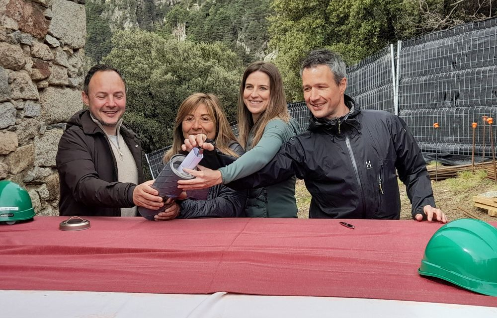 En aquest acte, Espot, Riva, Marsol i Astrié també han deixat una càpsula del temps on s’hi ha col·locat unes fotografies del campanar de diferents èpoques, la premsa del dia i un llapis de memòria usb amb el projecte de reconstrucció del campanar.