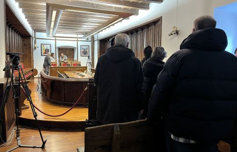 A les cinc de la tarda les portes de la Casa de la Vall s’obrien per rebre als visitants que volien conèixer aquests emblemàtics edificis en una data molt especial, el dia abans de la Constitució. Acompanyats d’una guia cultural, els primers cinc assistents a les portes obertes han començat la seva ruta per la Sala de les Sessions, on la guia els ha explicat tots els detalls de la sala com l’armari de les set claus, o la campana que sempre fa sonar el conseller més gran de Canillo. La visita ha continuat cap al Tribunal Penal, i després s’han dirigit escales avall en direcció al passadís que uneix la Casa de la Vall amb el nou Consell General. Si be és cert que ja fa anys que es va presentar aquest indret, encara hi ha molta gent que desconeix que existeix una connexió entre els dos edificis, i en el cas dels assistents també s’han quedat sorpresos amb travessar-lo.