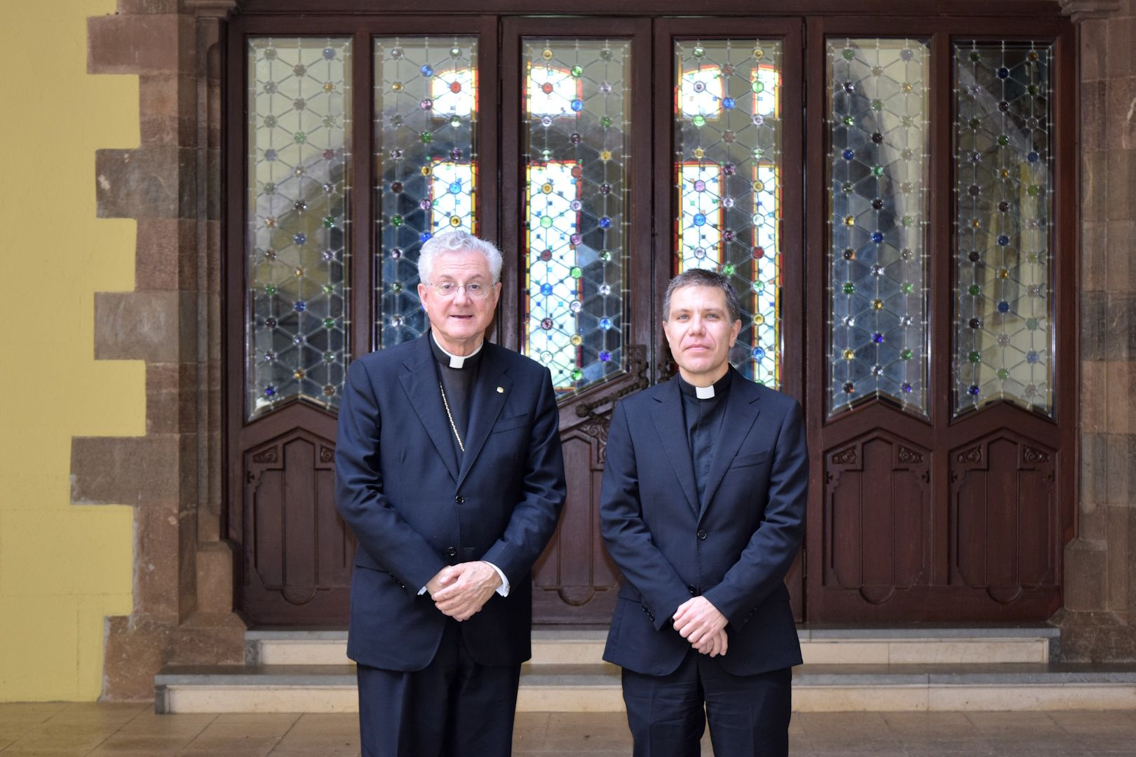Vives i Serrano a les portes del Palau Episcopal.