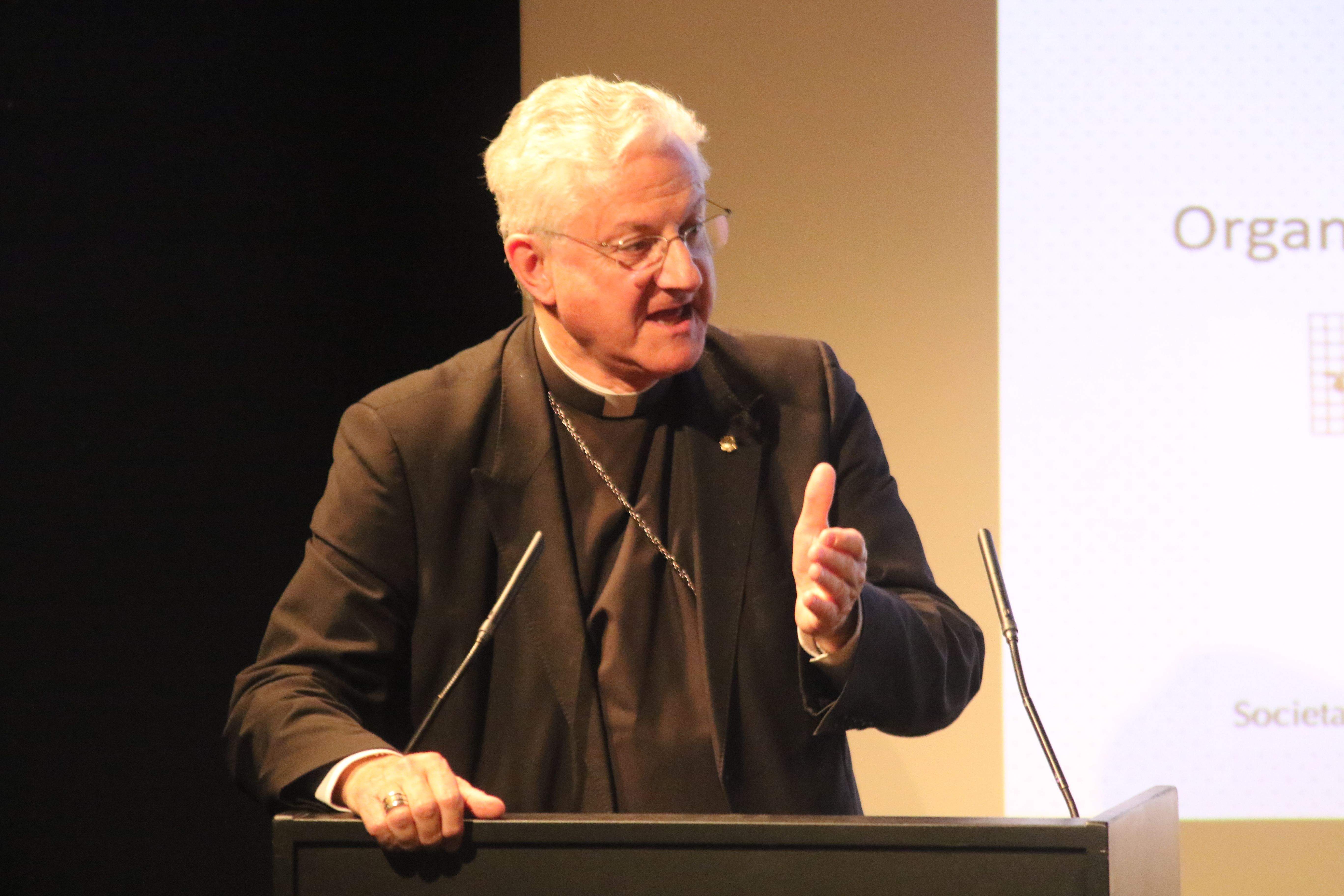 Joan-Enric Vives durant la compareixença per presentar el seu successor, Josep-Lluís Serrano Pentinat.