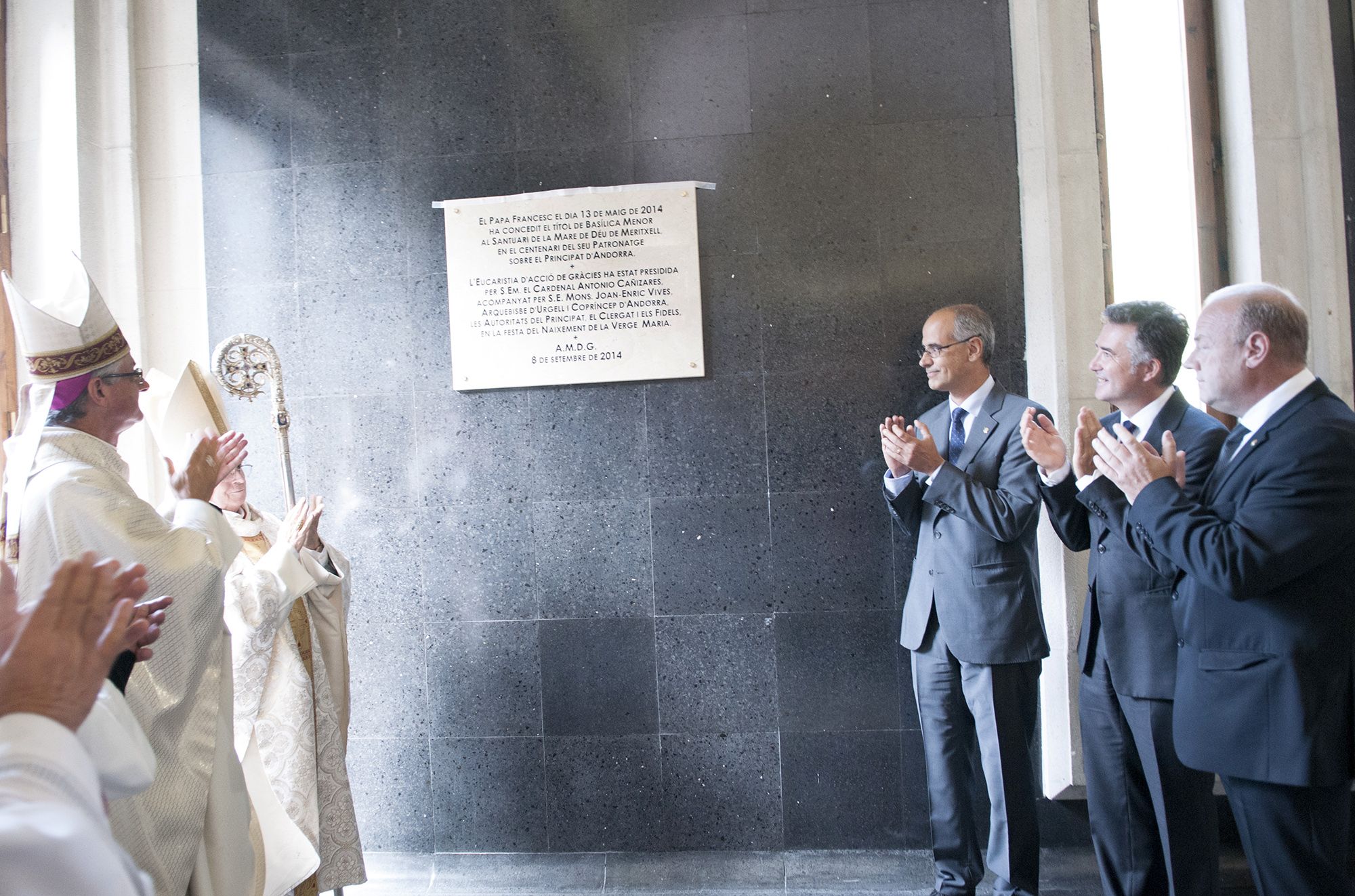 Descoberta de la placa que elevava a basílica menor el Santuari de Meritxell.