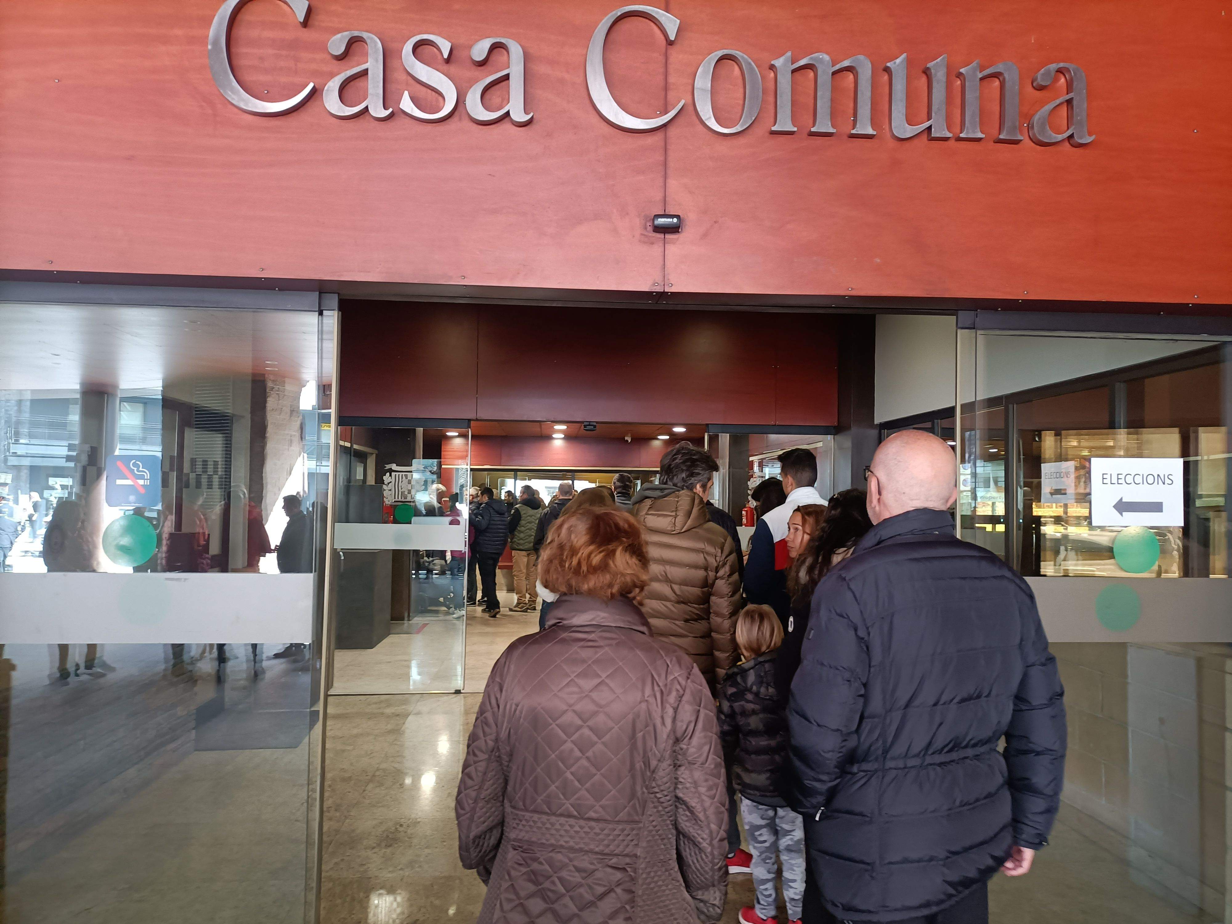 Cap a dos quarts de dotze del matí és quan s’ha viscut el moment de més afluència de votants amb una cua que arribava a l’entrada del comú, mentrestant a pocs metres, a l’església de Sant Iscle i Santa Victòria, començava la benedicció de les palmes i el llorer. De fet, alguns votants han aprofitat després per venir a votar amb la seva palma o la branqueta de llorer.
