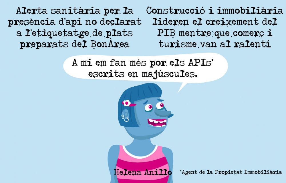 L’alerta sanitària per api no declarat en plats del BonÀrea ha fet que Helena Anillo trobi el joc de paraules lligat als APIs del sector immobiliari que influeixen en el PIB.