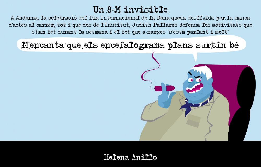 Davant una problemàtica de tanta importància com la que involucra les desigualtats de gènere especialment envers la dona, Helena Anillo fa broma amb l'activitat cerebral de segons quins protagonistes.