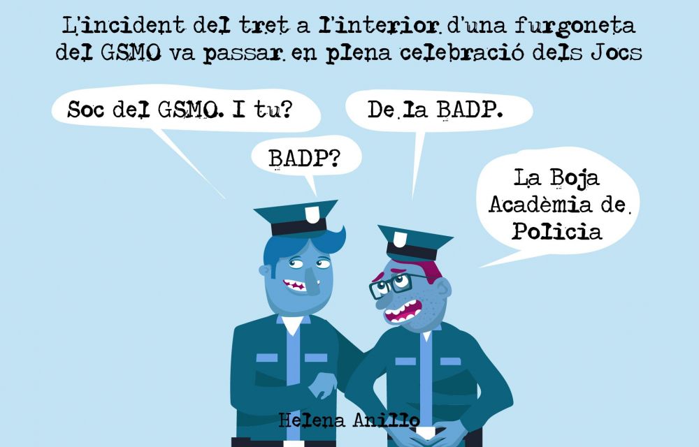 L’incident del tret a l’interior d’una furgoneta del GSMO durant la celebració dels Jocs li serveix a Helena Anillo per recordar una coneguda pel·lícula d’humor sobre policies.