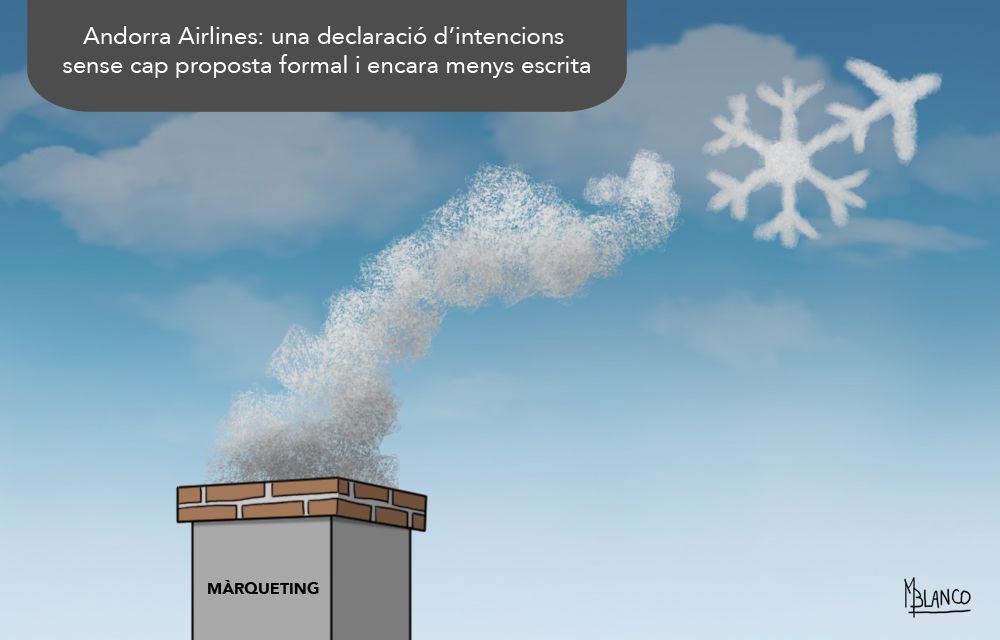 Fins i tot el Govern reconeix que el màxim responsable d’Andorra Airlines, just ara fa poques setmanes quan plantava un avió a la Seu i anunciava una operativa imminent, mai no ha aportat cap projecte sòlid. Ni tan sols una proposta per escrit. Màrqueting i fum, és el que hi veu Martín Blanco a ‘Al blanc(o)’.