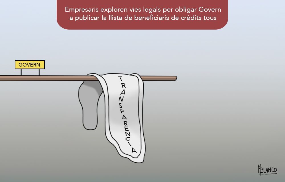 Un grup d’empresaris estudien vies legals per poder exigir a Govern la publicitació de la llista de beneficiaris dels crèdits tous concedits arran de la crisi generada per la pandèmia. Consideren que és necessari l’exercici de transparència.