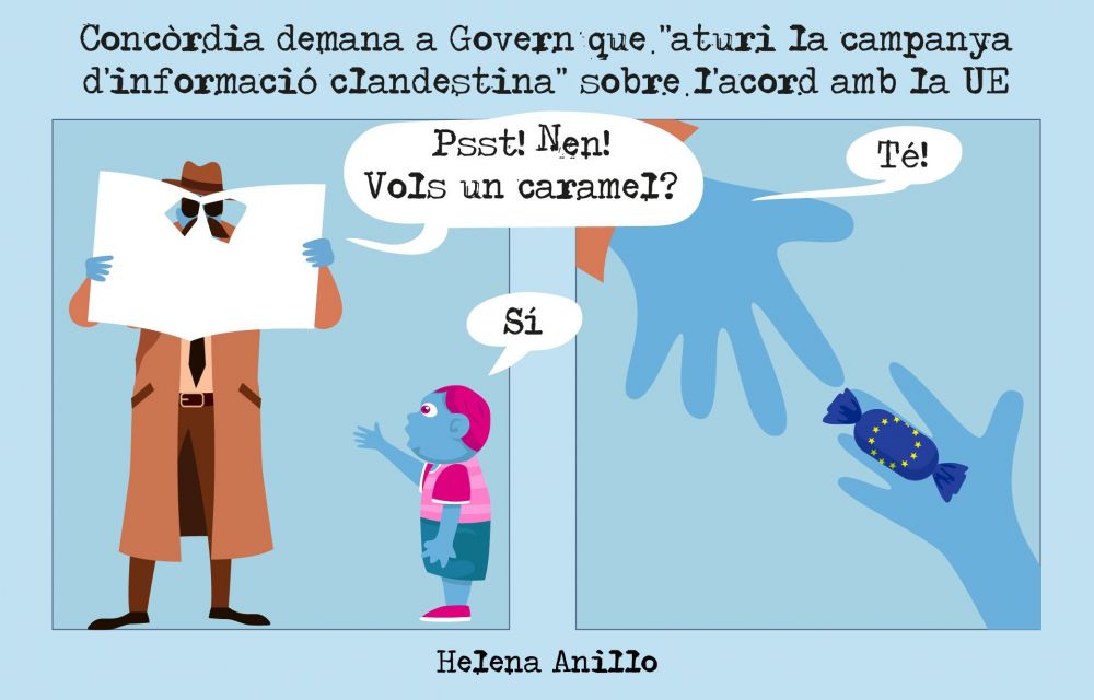 Concòrdia ha denunciat la campanya clandestina d’informació que està fent Govern als alumnes de batxillerat i als col·lectius professionals venent les bondats de l’acord d’associació amb la UE, però obviant els riscos.