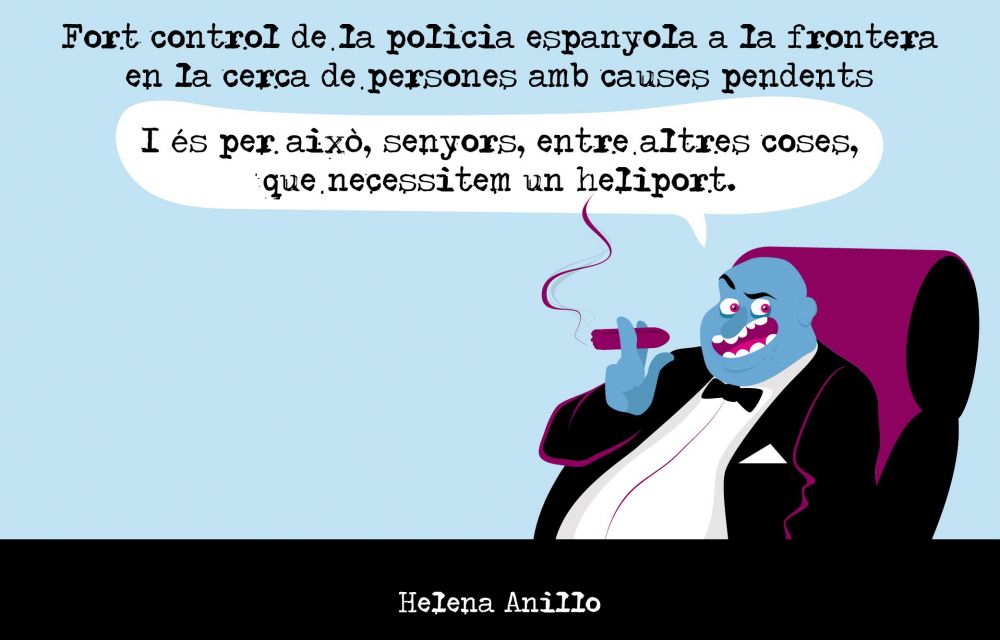 Un fort dispositiu policial desplegat just passades les garites de la frontera sorprèn els conductors que surten del Principat en direcció a Espanya. No és el primer dia que el control policial hi és, però en aquesta ocasió es fa més avinent encara, i Helena Anillo en dona la seva particular visió.