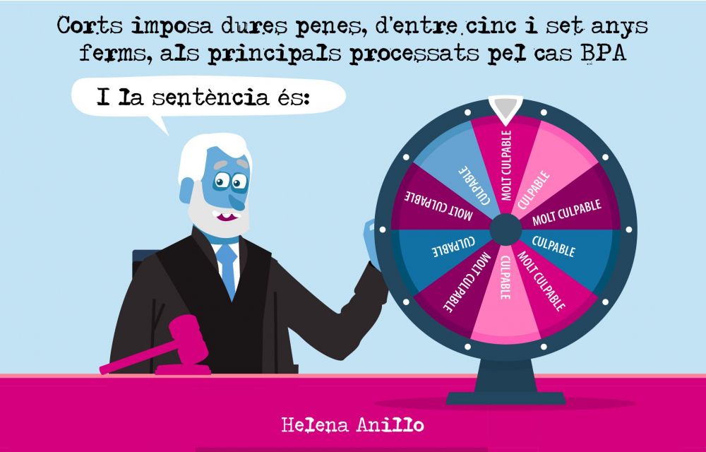 Tenint en compte la notícia del dia, la dura sentència als principals processats pel cas BPA, Helena Anillo ha optat per representar-la en una ruleta amb només dues opcions.