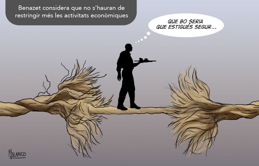 El ministre de Salut assegura estar convençut que no caldran més restriccions econòmiques. Però és que hi ha molts sectors que estan passejant-se per una corda fluixa a punt de trencar-se. O així ho veu Martín Blanco a ‘Al blanc(o)’.