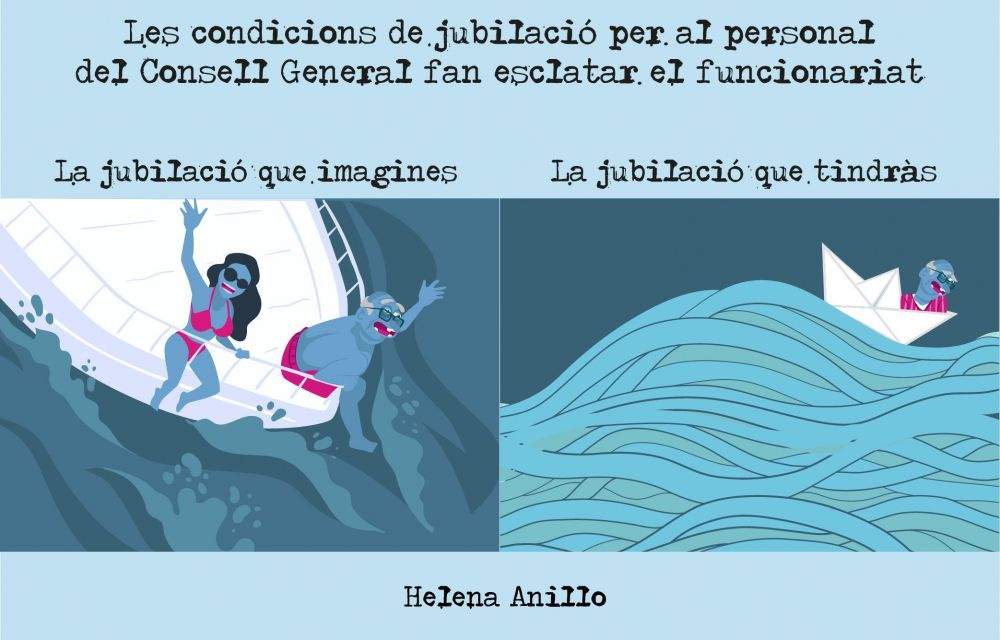 La inclusió d’una disposició específica que retorna al personal del Consell General condicions de jubilació abolides per a la resta de l’administració causa malestar entre el funcionariat.