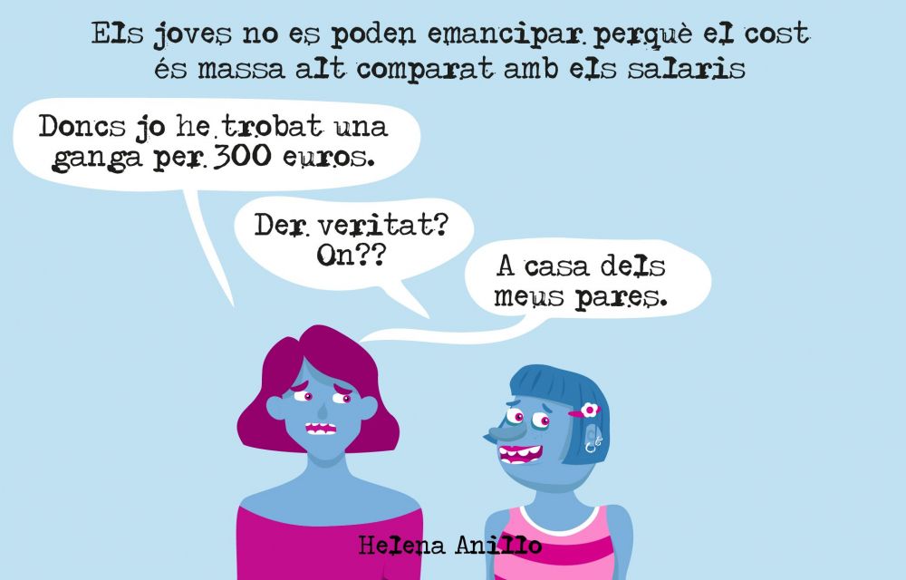 En el marc del debat del Fòrum Nacional de la Joventut, es va tractar la problemàtica dels joves a l'hora d'emancipar-se i poder accedir a un habitatge digne, tot i que Helena Anillo té ben clar que no trobaran res millor que la clàssica solució: la casa dels pares.