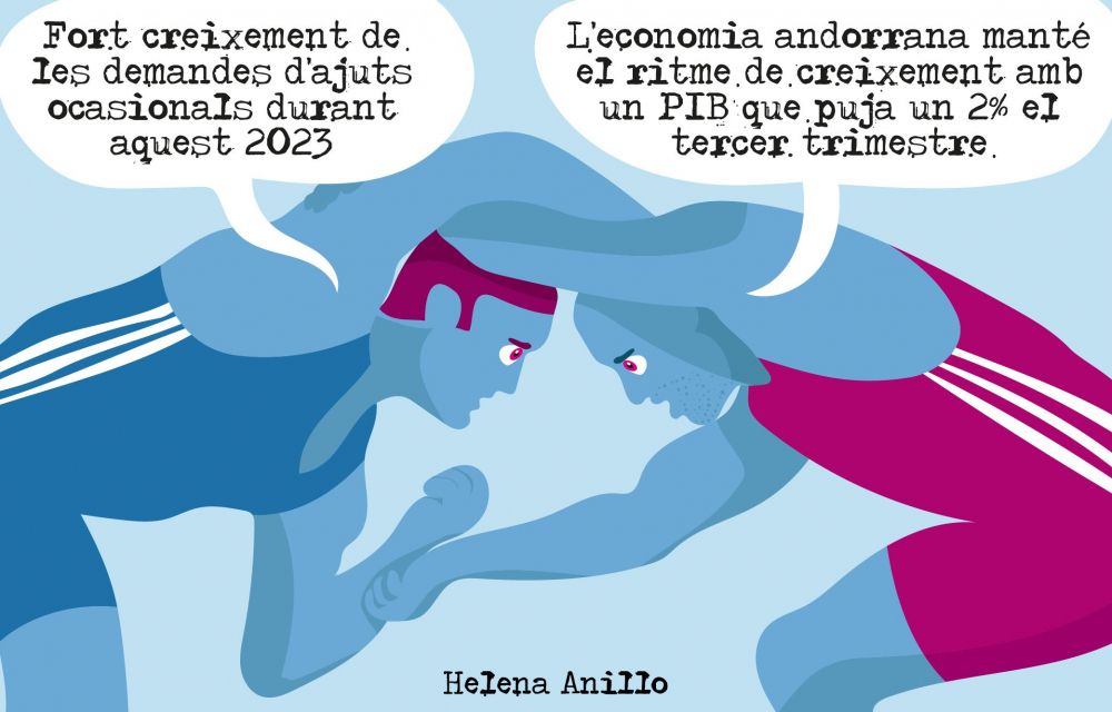 Helena Anillo confronta dues xifres que, al seu entendre, s’enfronten: per un costat, l’increment d’ajuts ocasionals; per l’altra, l’augment del producte interior brut.