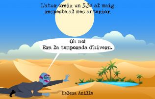 El nombre de demandants de feina a final de mes ha crescut un 5,3% respecte al mes anterior, un miratge que Helena Anillo ha representat en aquesta vinyeta.