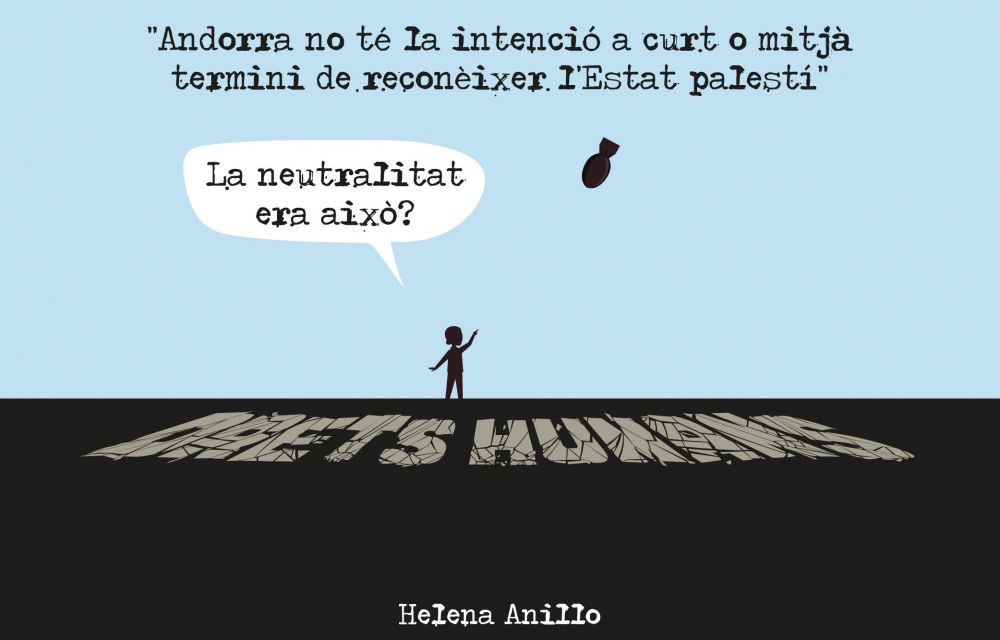 “Andorra no té la intenció a curt o mitjà termini de reconèixer l’Estat palestí”, ha estat la frase pronunciada per la ministra d'Afers Exteriors, Imma Tor, escudant-se en la neutralitat tradicional del Principat i afegint que no és el moment adient. És per això que Helena Anillo es pregunta: No posicionar-se és formar part de la neutralitat?