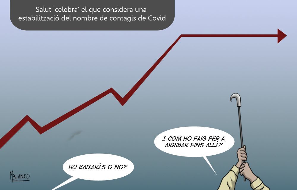 El ministeri de Salut considera que la reproducció dels contagis s’ha estabilitzat. Però la corba segueix molt amunt. I costa Déu i ajut fer-la baixar. O almenys així ho veu la vinyeta de Martín Blanco.