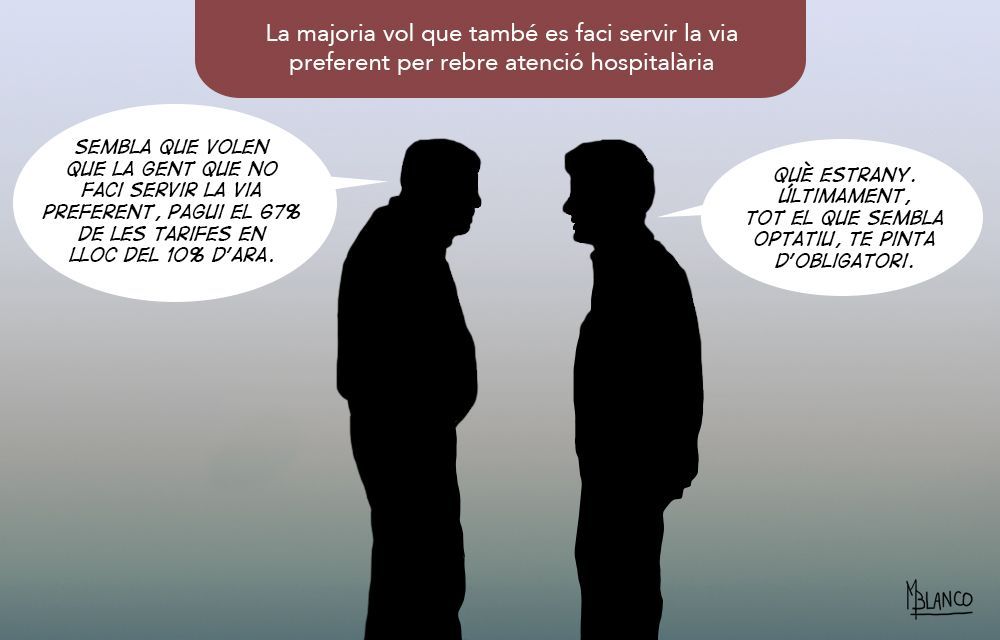 La coalició governamental vol establir com a necessària la via preferent per acudir a l’hospital, sinó també caldrà pagar més. Per a Martín Blanco, cada dia més, el que comença sent opcional acaba esdevenint obligatori.