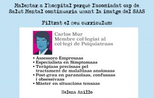 A l’hospital hi ha malestar perquè l’acomiadat cap de Salut Mental hauria seguit utilitzant la imatge del SAAS i Helena Anillo imagina com seria el seu currículum.