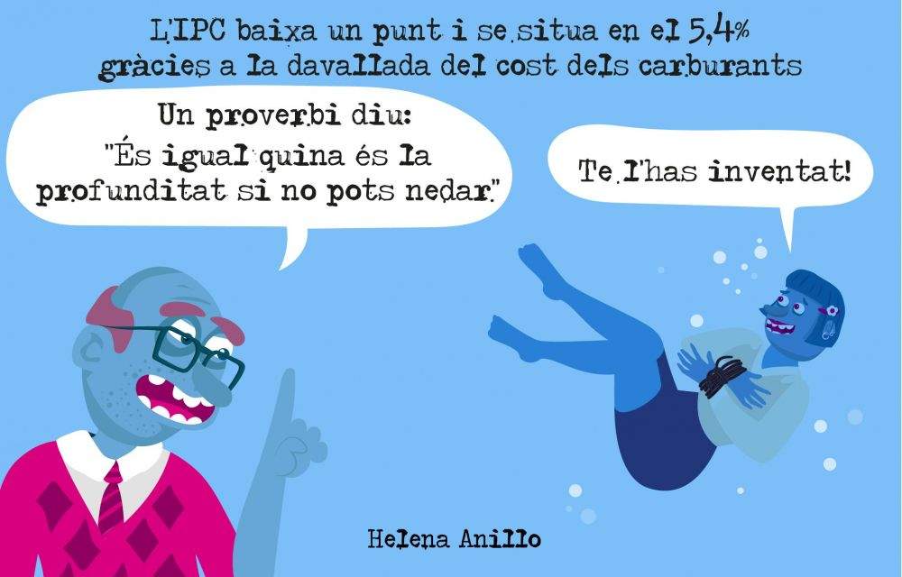 L’IPC ha baixat un punt a l’abril, però encara se situa en un 5,4%; com s’encarrega de remarcar Helena Anillo la dada dificulta molt la situació econòmica de les famílies.